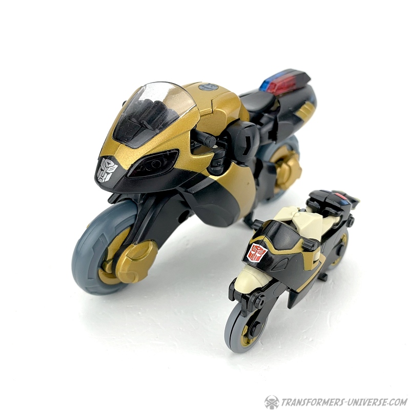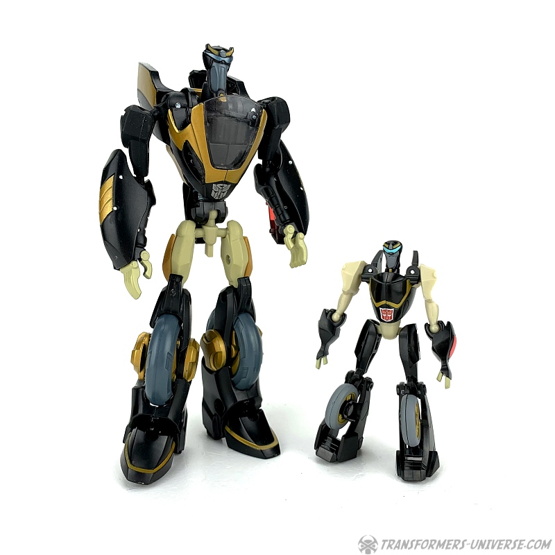 Bemerkungen: Auf die Gefahr hin mich zu wiederholen, warum sind die Legends-Versionen der Animated Charaktere nochmal Teil der Universe Reihe? Hab' darauf leider noch keine Antwort gefunden. Lässt man diese Frage aber mal beiseite, dann macht Legends Prowl seinen Job als Mini-Version von unserem Lieblings-Animated-Ninja ziemlich gut. Ich persönlich bin ja kein großer Fan der Legends-Klasse (hab' mir die hier hpts. gekauft, weil es endlich mal wieder neue Transformers im Laden waren) und ziehe die Deluxe Version vor, aber er ist ein netter kleiner Kerl. Für Prowl- und Legends-Klasse-Fans empfohlen.