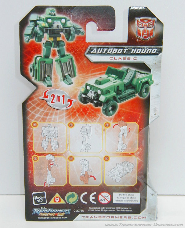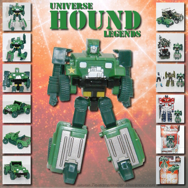 Bemerkungen: Hound war in der ersten Staffel des Generation 1 Cartoons der Scout der Autobots und führte die Decepticons außerdem mehr als einmal mit seinen Hologrammen in die Irre. Seitdem hat man von ihm nicht mehr viel gesehen, das einzige Auftauchen seit G1 war seine Binaltech Inkarnation.