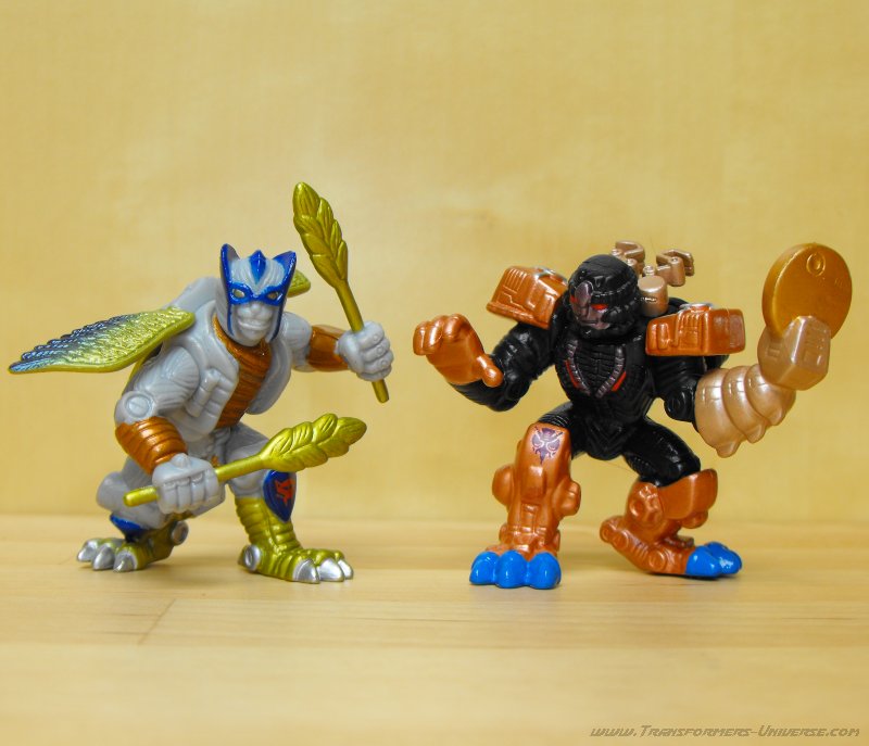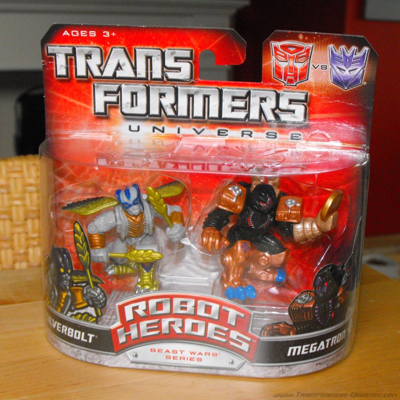 Silverbolt enttäuscht ebenfalls nicht. Und diese Paarung macht sogar Sinn (zumindest ein wenig), da Silverbolt und TM Megatron sich vor der Arche gegenübergestanden haben. Okay, weniger gegenübergestanden als dass Megatron Silverbolt in den Rücken geschossen hat und dann drohte, ihn umzubringen, aber es passt. Silverbolt, der überlebensgroße Helden-Charakter, ist hier sehr schön dargestellt und hat sogar seine Feder-Raketen als Waffen dabei. Ein toll aussehender Maximal und die zweite Hälfte eines ziemlich perfekten Robot Heroes Paares. Keinerlei Beschwerden.