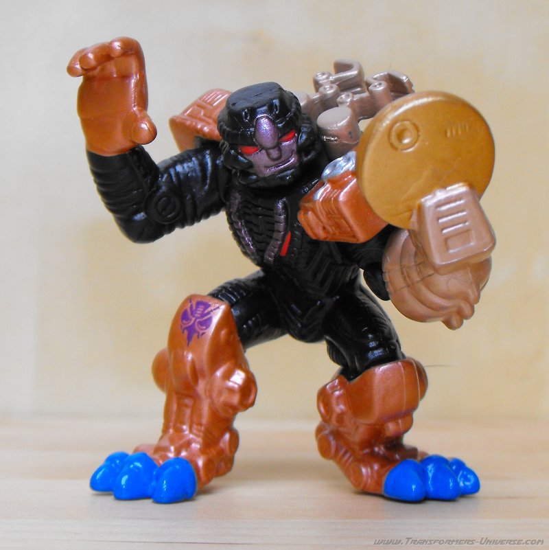 Beschreibung: Ich hab' noch keinen Optimus Primal, aber das hier ist bereits der zweite Megatron für die Beast Wars Reihe. Was ja nicht schlecht ist. Ich mag Transmetal Megatron sehr und nicht nur, weil die zweite Staffel von Beast Wars meine absolute Lieblingsstaffel ist. Hier haben wir Megatron wie er aussah, als er Optimus Prime den Kopf wegbließ und beinahe die Geschichte veränderte. Er hat sogar die berühmte Goldene Disk in der Hand und die Detaillierung auf seinem Körper ist sehr schön gemacht. Er hat sogar seine Flugturbinen auf dem Rücken. Also Daumen hoch für TM Megatron, er sieht toll aus.