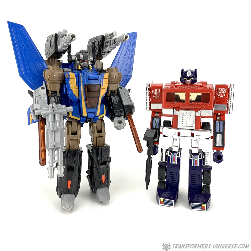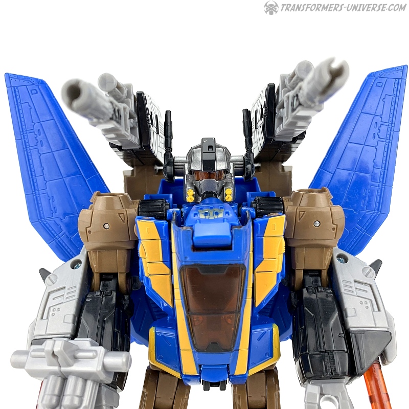 Bemerkungen: Tread Bolt war ein Micromaster aus dem Jahr 1990 und ist eigentlich nie irgendwo in Erscheinung getreten. Man kann ihn bei den Dead Universe Micromasters in den IDW Comics in ein oder zwei Paneelen sehen und er hatte einen Mini-Auftritt im Wings Universe vom Transformers Collectors Club (wo er direkt starb). Somit ist es etwas überraschend, dass ausgerechnet er ausgewählt wurde, als die Universe Reihe ein Repaint des Classic Jetfire Molds rausbringen wollte. Nicht dass ich mich beschwere, es ist nur etwas seltsam. Andererseits haben es eine ganze Reihe von Micromaster Namen in die Universe Reihe geschafft (Countdown, Drop Shot, Skyfall, Stormcloud, Tread Bolt).