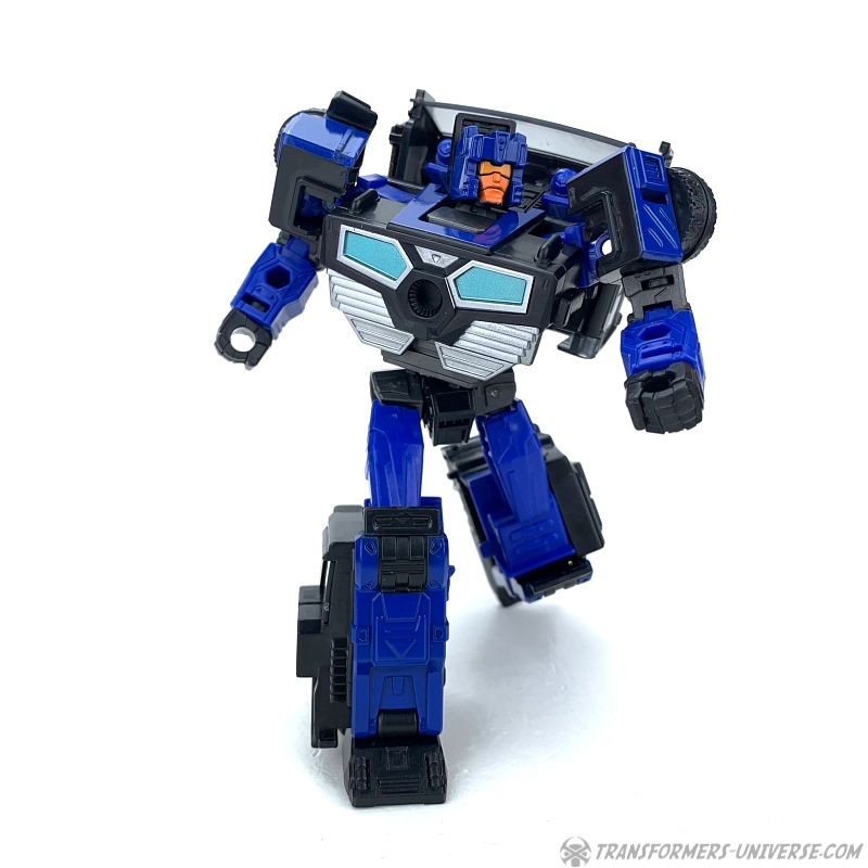 Robotermodus: Crankcase ist ein umfangreiches Retool von Legacy Skids, aber den habe ich ausgelassen, insofern ist das hier meine erste Erfahrung mit diesem Mold. Fangen wir mit den positiven Dingen an. Vergleicht man Crankcase mit seinem G1 Vorgänger, dann ist die Ähnlichkeit schon ziemlich stark. Der Kopf, die Brust, und auch die Schienenbeine sind nahe am Vorbild und beide Figuren tragen einen Rucksack, somit ist der Wiedererkennungsfaktor recht hoch. Persönlich hätte ich es noch gerne gesehen, wenn sie ihm eine Kopfwunde wie in den IDW Comics verpasst hätten, aber das nur nebenbei. Die Beweglichkeit der Figur ist Standard für die Legacy Reihe, also ziemlich gut. Crankcase kann problemlos alle möglichen Posen hinlegen.