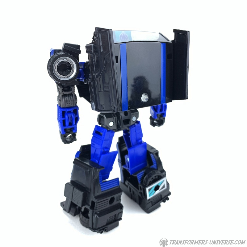 Und dann wären da noch die Waffen. Crankcase erste Waffe ist ein transparenter, rauch-grauer Blaster, der… okay ist, schätze ich. Nicht toll, aber okay. Aber seine zweite Waffe ist die vordere Stoßstange seines Automodus, wo man an einer Seite ein kleines Teil runterklappt, um zwei winzig kleine Mündungen freizulegen. Hätte für mich deutlich mehr Sinn gemacht, die Masse dieses komischen Gewehr-Dingens dafür zu verwenden, ihm ordentliche Schulterkanonen zu verpassen.