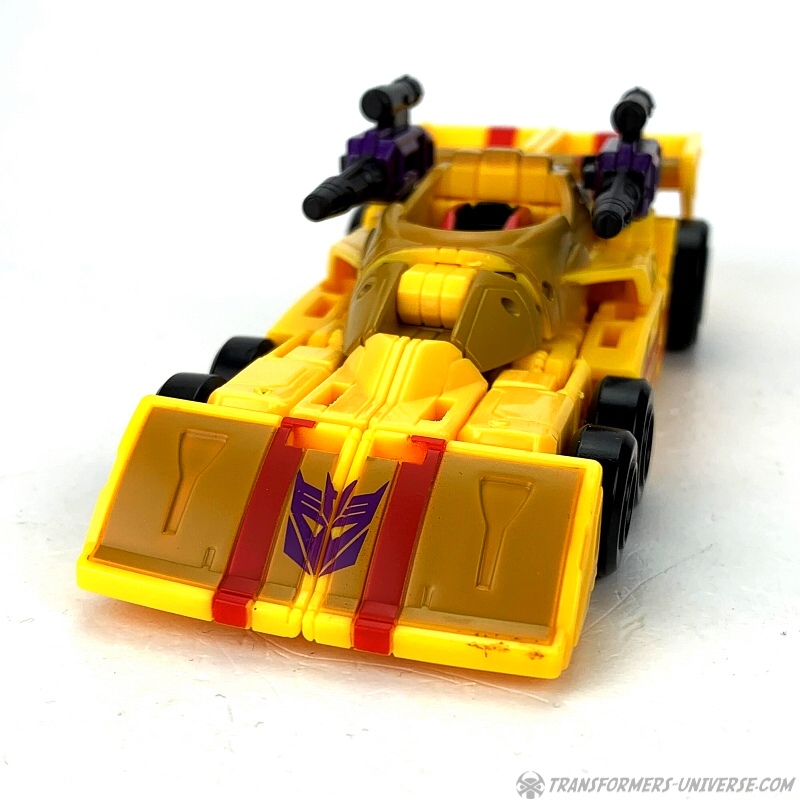Für Dragstrip ist das Siegen einfach alles. Er würde lieber verschrottet werden als zu verlieren. Kombiniert sich mit anderen Stunticons zu Menasor.