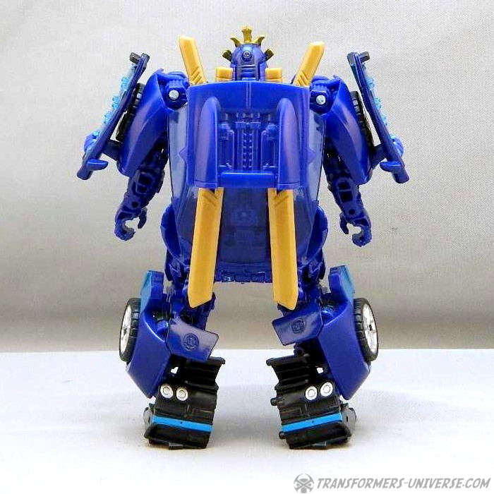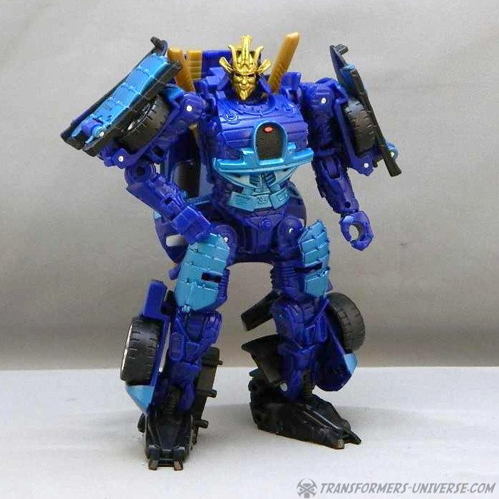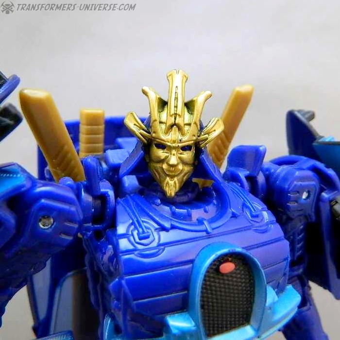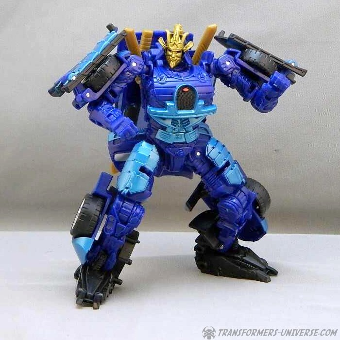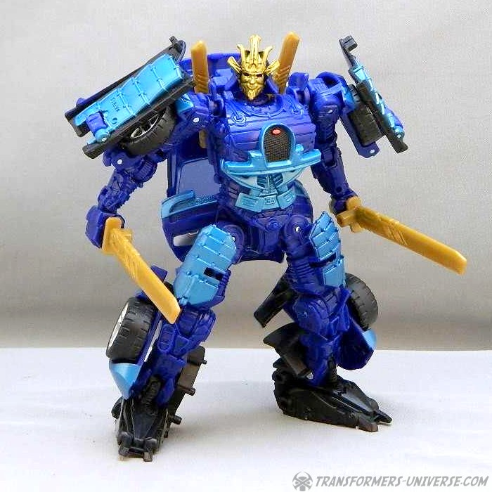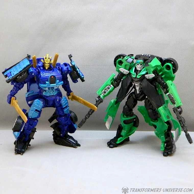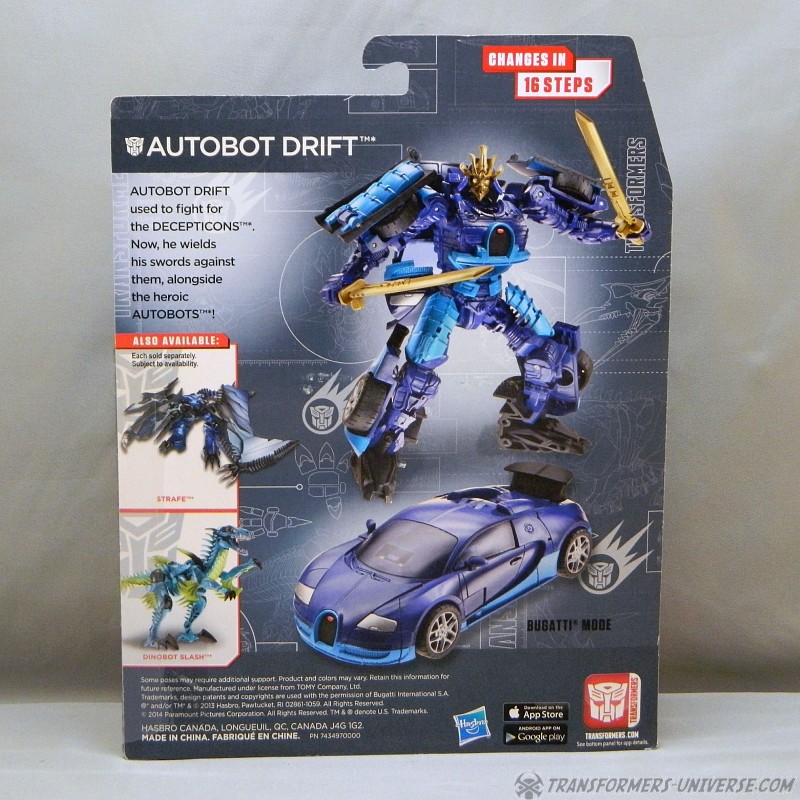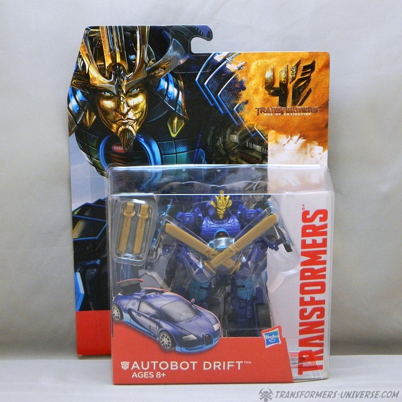 Bemerkungen: Age of Extinction war Drifts erster Auftritt in einem Live-Action Film. Nachdem wir ihn in Generations in Weiß sahen und bei Shattered Glass in Rot ist er hier jetzt Blau. Seine schwarze Version aus The Last Knight habe ich ja bereits rezensiert, diese ist ein Retool von dieser AOE Deluxe Figur. Auf die grüne und gelbe Version warte ich noch. Drift hat zwei Schwerter und zwei Messer als Waffen dabei.