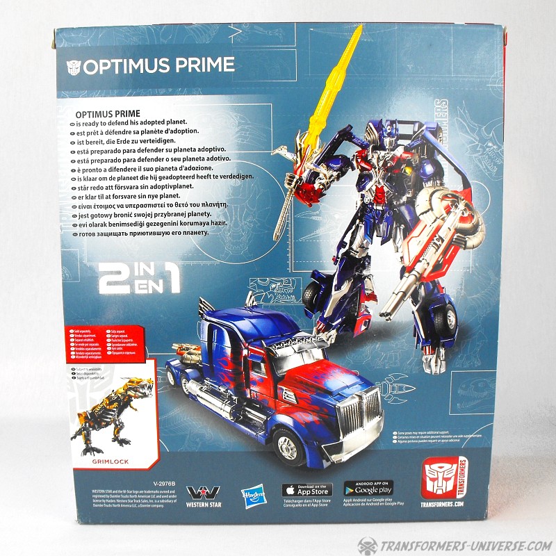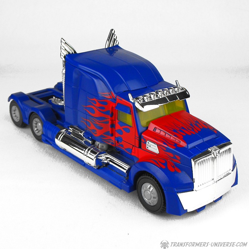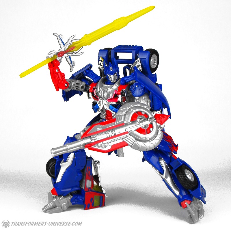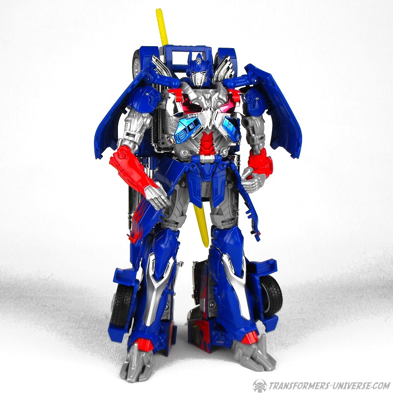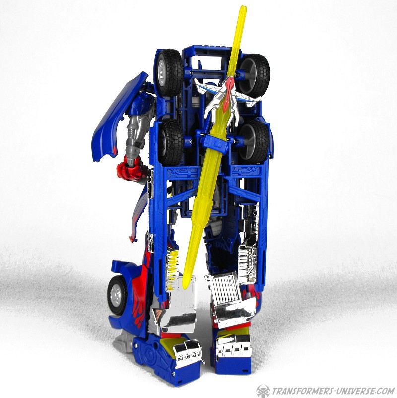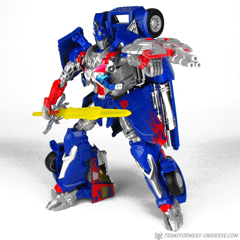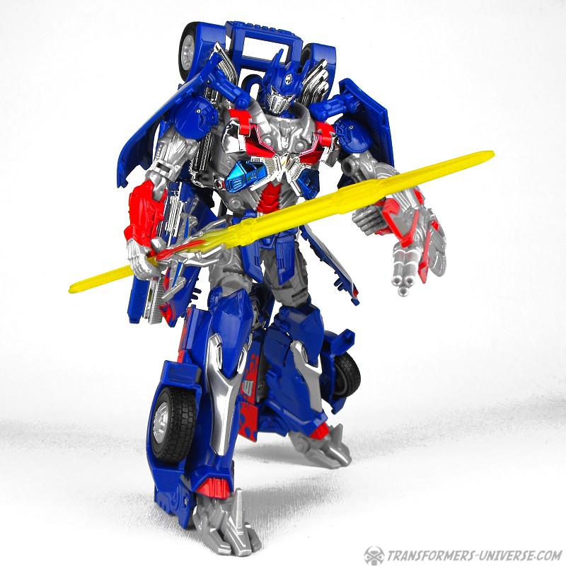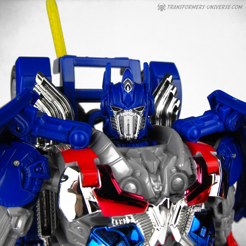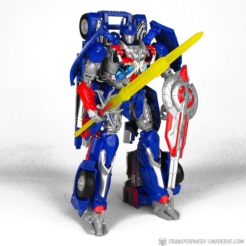 Bemerkungen: Optimus Prime verbrachte den ersten Akt von „Ära des Untergangs“ damit sich in Form eines rostigen alten Kasten-LKWs zu verstecken. Auf dem Weg die anderen Autobots zu treffen allerdings scannte er einen neuen Fahrzeugmodus (was wie durch Zauberhand auch all seine Schäden reparierte) und in dieser Form zog er dann auch gegen die diversen Bösewichter des Films in die Schlacht. Das coole Schwert gab’s erst relativ zum Schluss, aber es passt gut zu ihm.