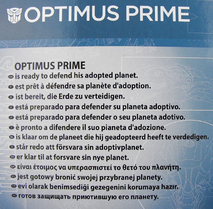 Optimus Prime hat immer geglaubt dass Freiheit das Recht aller empfindsamen Wesen ist. Er hat diesen Glauben niemals verloren, egal was ihm im Kampf zugestoßen ist. Wieder steht er bereit die Bewohner seiner neuen Heimat zu verteidigen. Der unbeugsame Autobot Anführer bereitet sich auf den Kampf vor, bei dem die Autobots ihre Rolle als ehrenhafte Beschützer der Erde zurückerlangen werden.