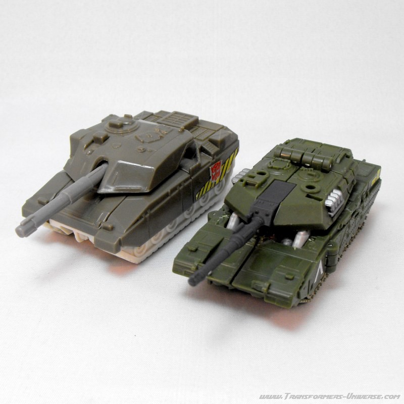 Sieht man von seinem Mangel an Beweglichkeit ab gibt Guzzle aber einen ziemlich guten Panzer ab. Keine sichtbaren Roboterteile, es sei denn man guckt von unten, gute Detaillierung und ein recht realistisches Aussehen. Trotzdem hätte ich mir zumindest einen drehbaren Geschützturm gewünscht, aber die Art wie die Figur transformiert (G2 Megatron lässt grüßen) macht das leider unmöglich. Insgesamt also ein gut aussehender, aber eingeschränkter Fahrzeugmodus.