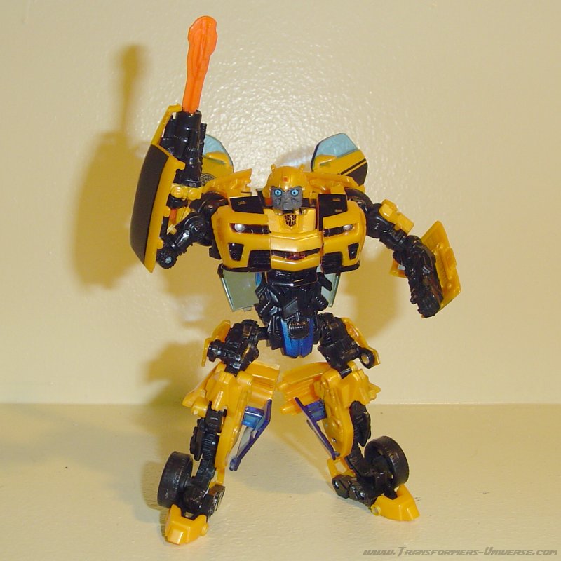 Robotermodus: Der erste Concept Camaro Bumblebee wird von vielen als eine der besten, wenn nicht sogar die beste, Figur der 2007er Movie Reihe betrachtet. Ich selbst hab’ ihn mir jedoch nicht geholt, da mir seine Kanonen-/Klingen-Waffe nicht gefiel (das war noch vor der Wirtschaftskrise). Diese neue Version der Figur hier macht mich glücklich, dass ich gewartet habe. Das einzige, was mir nicht so gefällt, ist das Gesicht, da es mich irgendwie an einen glubschäugigen Mega Man erinnert und irgendwie unheimlich ist.