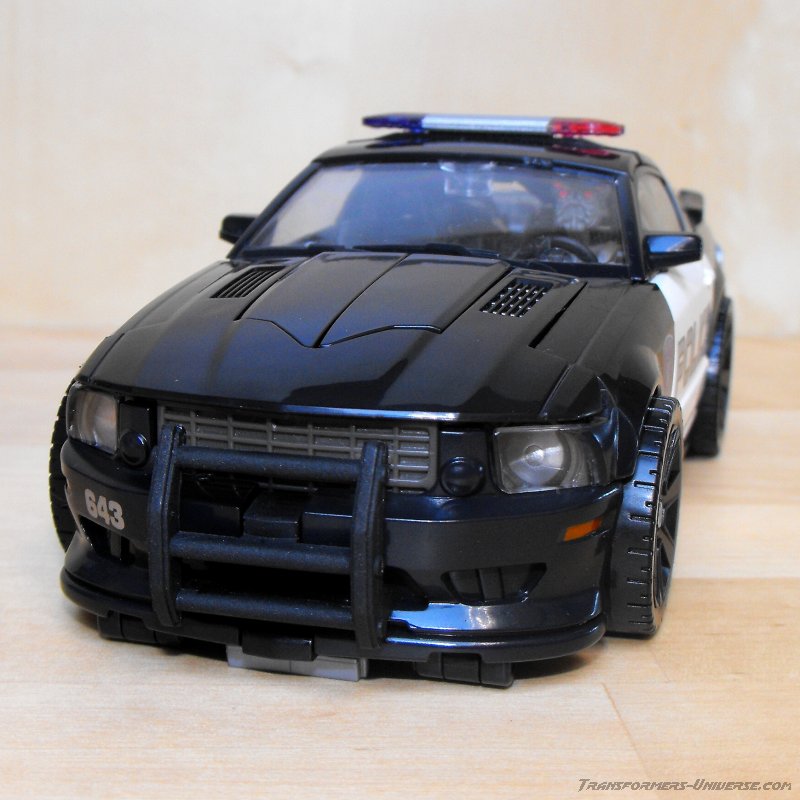 Der einzige kleine Mangel an dieser Figur hier ist das Design der Hüfte, besser gesagt die Art, wie die Beine dort befestigt sind. Die seltsam angewinkelte Art der Befestigung schränkt ihn bei stehender Pose keinesfalls ein, aber bei rennenden Posen neigt Barricade dann doch leicht zu X-Beinen. Ist jetzt kein großes Ding und kann leicht korrigiert werden, hat mich aber ein wenig geärgert. Davon abgesehen aber ein ziemlich cooler Robotermodus.