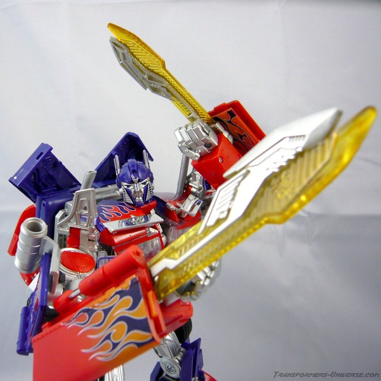 FAST deswegen, weil die beiden Schwerter die Armfreiheit vor allem in Bezug auf das Arme-geradeaus-Strecken extrem behindern und es gar unmöglich machen. Dafür einen Minuspunkt. Werden hingegen die Schwerter ausgeklappt, ist der Beweglichkeit kaum eine Grenze gesetzt. Die imposanten Posen sind kaum beschreibbar, weshalb ich hier die Fotos sprechen lassen möchte. Was ich jedoch nicht verstehe ist, warum man die beweglichen Finger von der Moviefigur nicht übernommen hat. Sie hätten weder den Altmode noch den Botmode oder die Kombination mit Jetfire behindert.