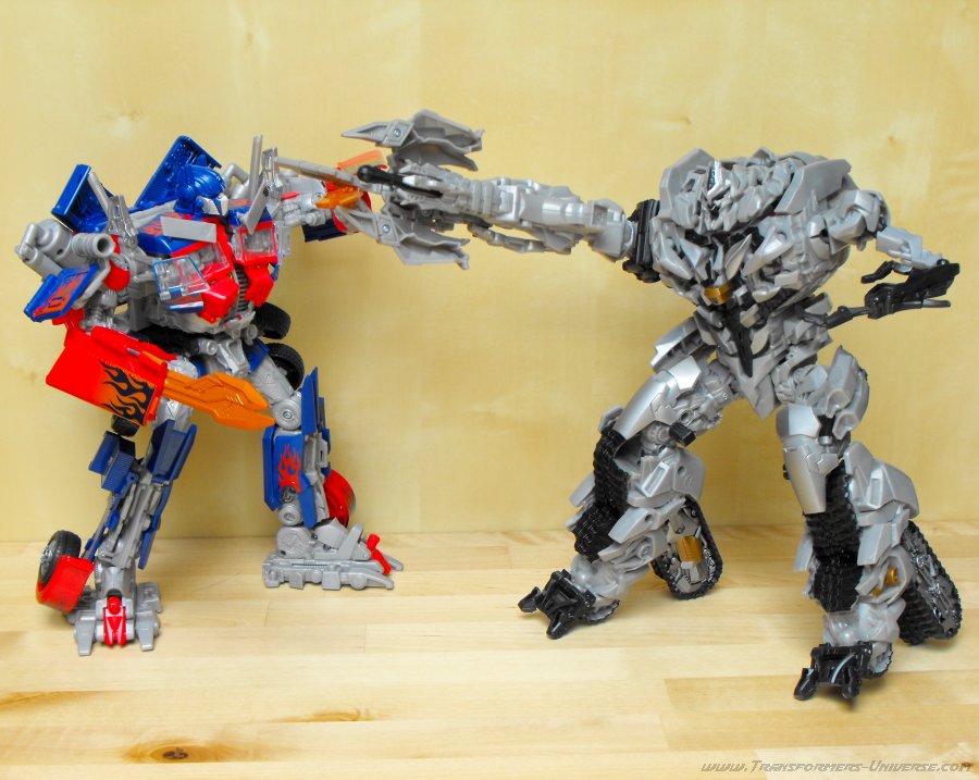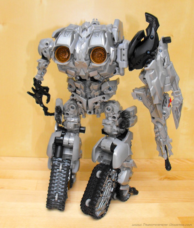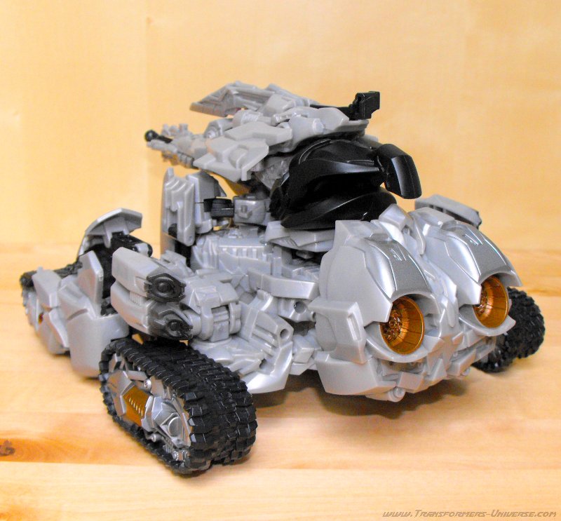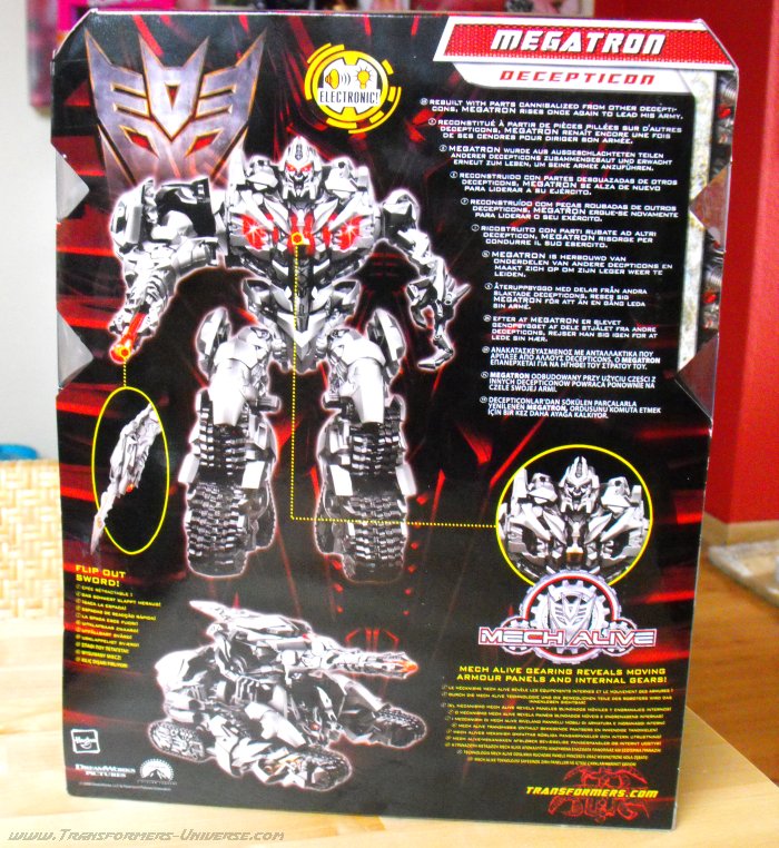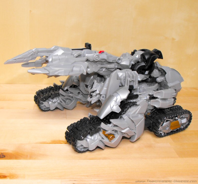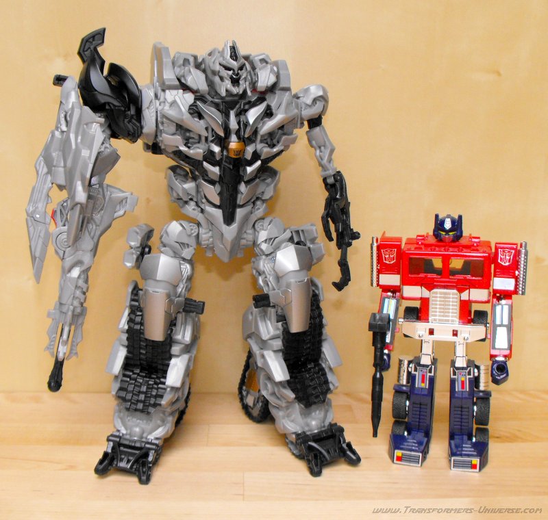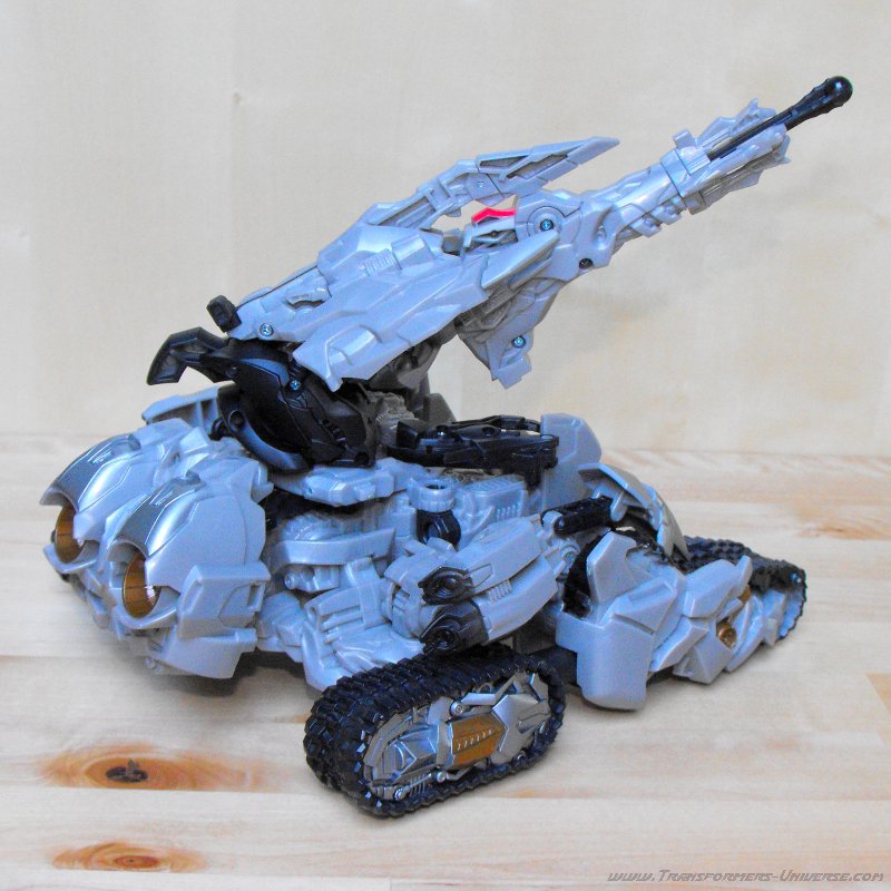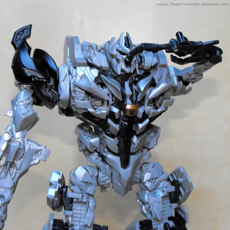Bemerkungen: Megatron starb scheinbar am Ende des ersten Transformers Realfilms, aber inzwischen sollte eigentlich so ziemlich jeder wissen, dass er in Revenge of the Fallen wiederkommt (was für eine Überraschung). Sein Körper wurde mit Teilen anderer gefallener Decepticons wieder aufgebaut, darunter Brawl, was Megatron die Panzerketten an seinen Beinen beschert hat. Wird Megatron im zweiten Film wieder sterben? Das werden wir noch früh genug erfahren, nur noch wenige kurze Wochen.