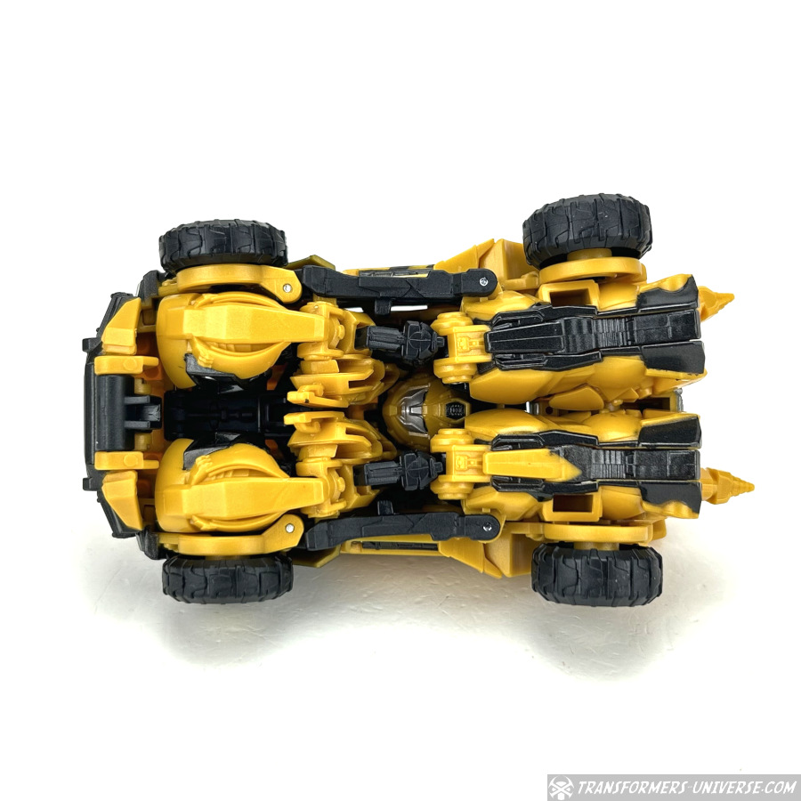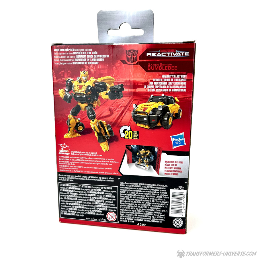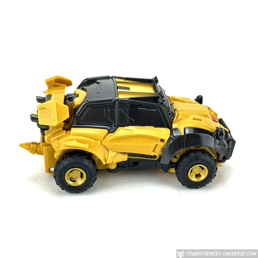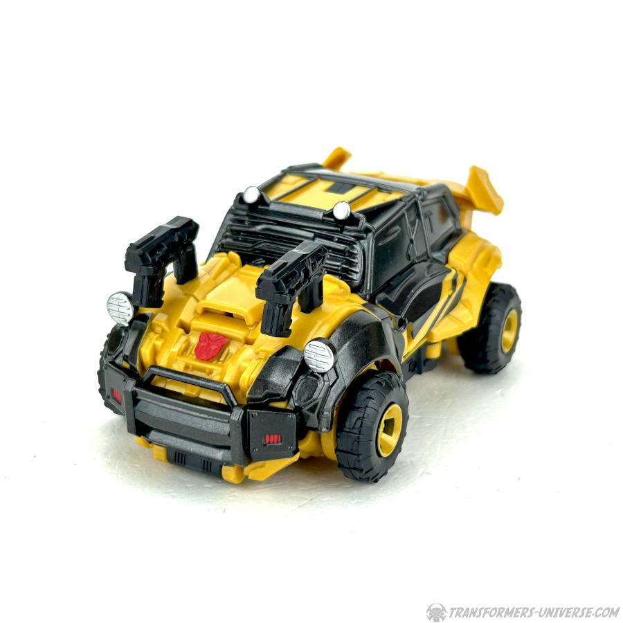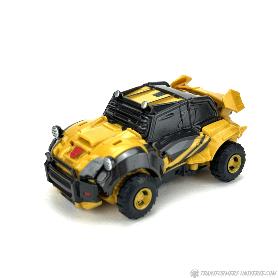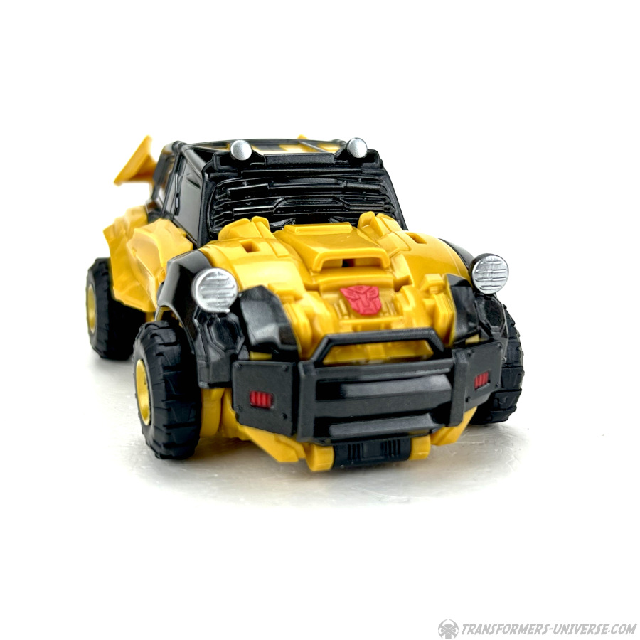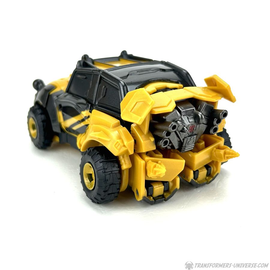 Alternativmodus: Bumblebee verwandelt sich in ein Auto, das irgendwann in einem früheren Leben vielleicht mal ein Volkswagen Käfer oder ein ähnliches Modell war. Dann jedoch wurde es umfangreich überarbeitet für das Mad-Max-artige Umfeld, das wir vermutlich im Reactivate Spiel gesehen hätten. Die Transformation ist komplex ohne wirklich schwierig zu sein und – wie es inzwischen die Norm für Bumblebee Figuren zu sein scheint – man kann von unten den Kopf des Roboters sehen.