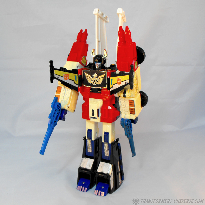 Die Victory Reihe enthielt so einige Figuren, die aus umfassend umgestalteten früheren G1 Figuren entstanden. Persönlich gefällt mir Greatshot besser als Sixshot, hauptsächlich wegen der Farben und dem (für mich) schöneren Kopf und den Schulterstücken. Objektiv gesehen nehmen die beiden sich nicht viel und Sixshot ist sicherlich einfacher zu bekommen. Ich hätte das Geld für einen vollständigen OVP Greatshot sicher nicht ausgegeben (das günstigste auf eBay waren 380 Dollar), aber ich erwarb ihn als Teil eines Konvoluts und bin damit glücklich. Empfohlen für Fans von japanischen Exklusivfiguren und Raritäten.
