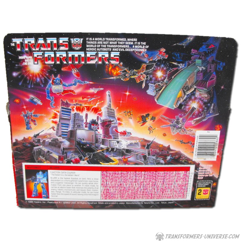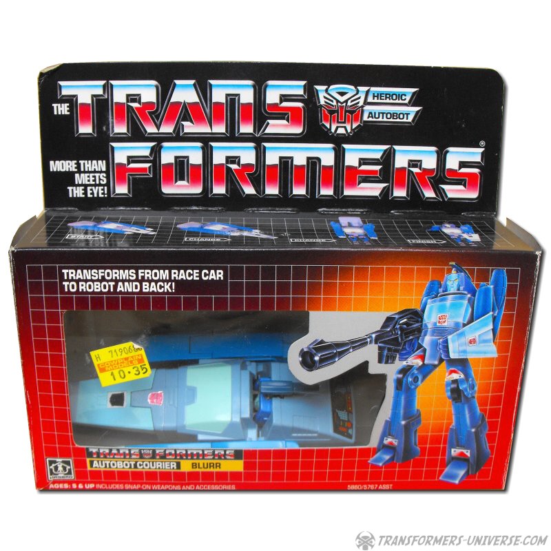 Bemerkungen: Blurr war einer der Hauptcharaktere in der dritten Staffel des G1 Cartoons. Er redete schnell, bewegte sich schnell, ging allen auf die Nerven (wenn auch nicht so sehr wie Wheelie), zeigte sich aber als wackerer Kämpfer gegen solche Gegner wie die Predacons und die Sweeps. Blurr wurde später zu einem Targetmaster (in der berücktigten vierten Staffel). Die Figur wurde dabei nur insofern verändert, dass im Automodus nun die Möglichkeit bestand, die Targetmaster Waffe anzubringen.
