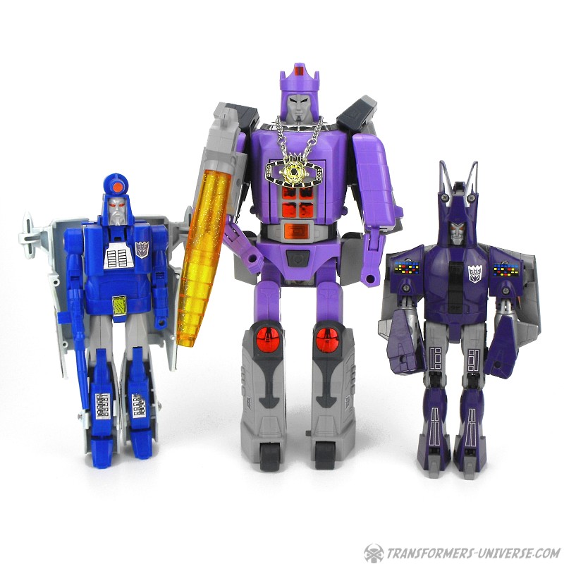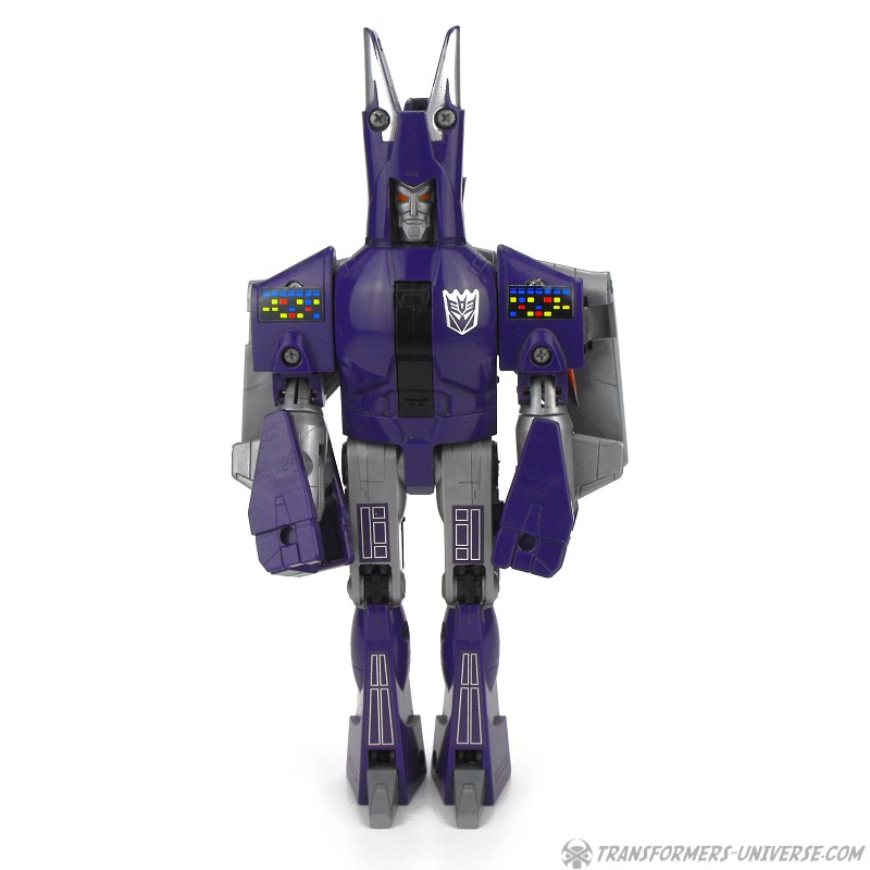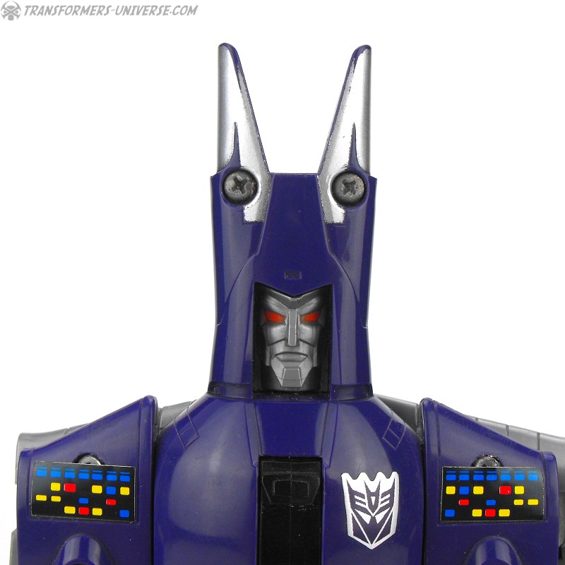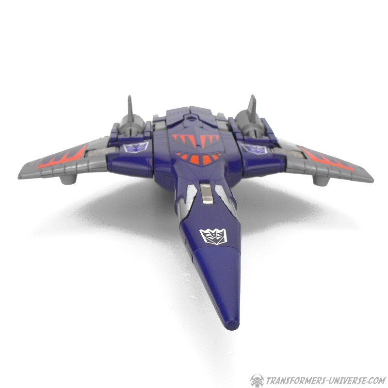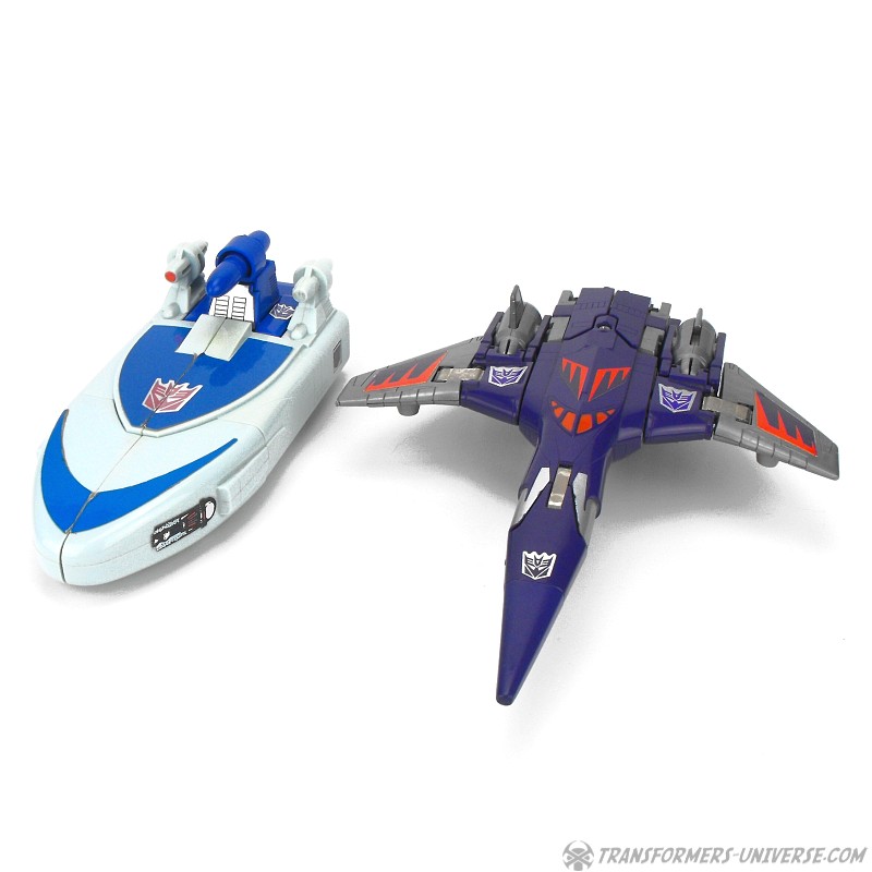Bemerkungen: Cyclonus wurde während dem Transformers Film aus den Überresten eines toten Decepticons erschaffen, entweder aus Bombshell oder einem der Seeker (Diskussionen bitte jetzt starten). Im Film spielte er keine große Rolle, war dafür aber einer der Hauptbösewichter während der dritten Staffel des Cartoons, wo er als Galvatrons Stellvertreter diente. In der vierten Staffel wurde er zu einem Targetmaster und seine Waffe durch einen Nebulon ersetzt. Als Figur ist Cyclonus zwar keine Revolution, aber eine der besseren aus diesem Jahr. Außerdem stellt er einen der prominenteren Transformers Charaktere dar. Ist man also Fan der dritten Staffel des G1 Cartoons, dann ist Cyclonus eine Anschaffung wert.