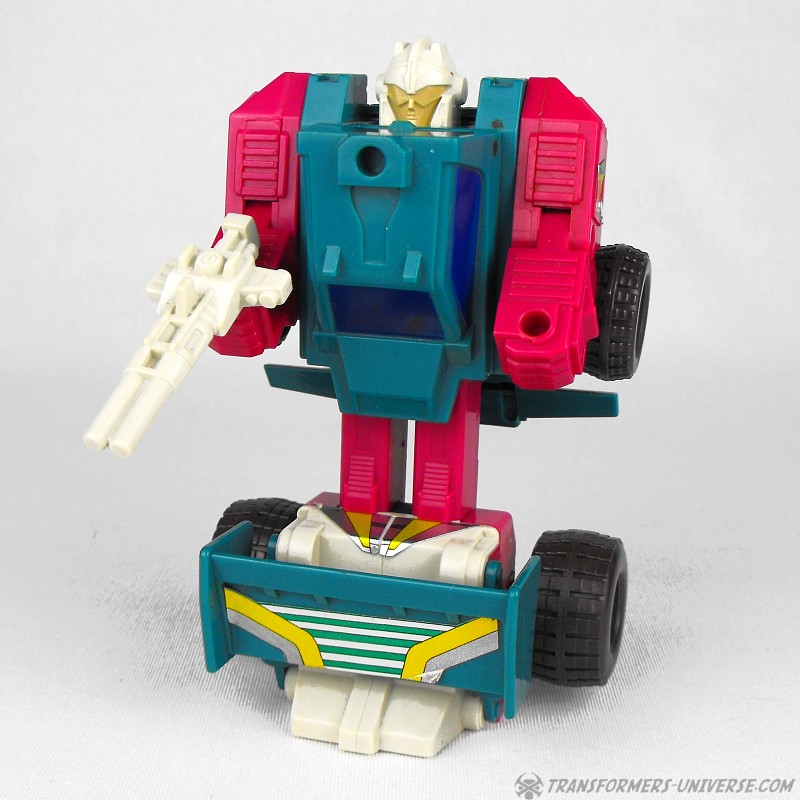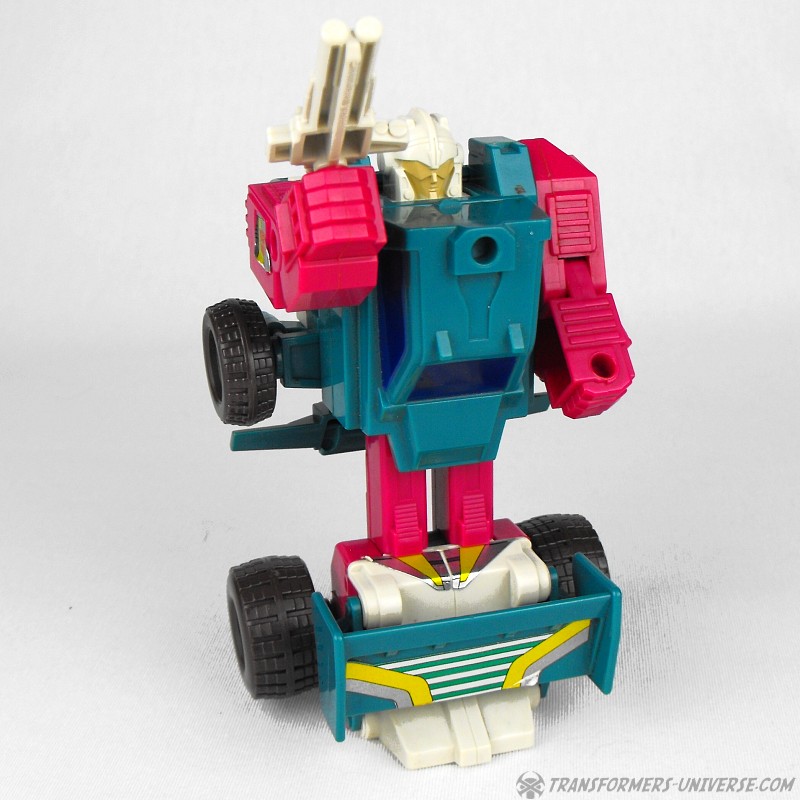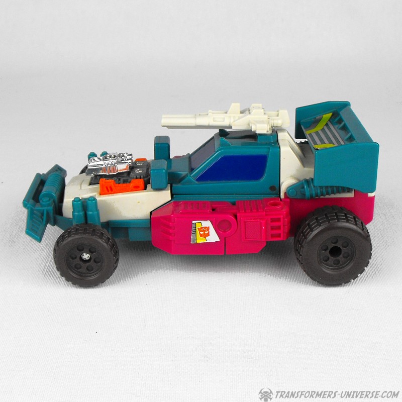 Ein unbesonnener Rennfahrer. Fährt immer schneller als er sollte. Genießt den Nervenkitzel des Fahrens mit hoher Geschwindigkeit. Kämpft des Spaßes wegen, was viele seiner besonneneren Autobot Kollegen verärgert. Seine Titan-verstärkten Reifen sondern einen Klebstoff ab, was ihm hervorragende Manöverirfähigkeit auf der Strasse gibt. Ist mit dem Nebulonier Hotwire binärverbunden, einem bekehrten Autodieb und hervorragendem Mechaniker. Bewaffnet mit einem Photonenblaster, der bei Treffern die interne Mechanik des Ziels einfriert.