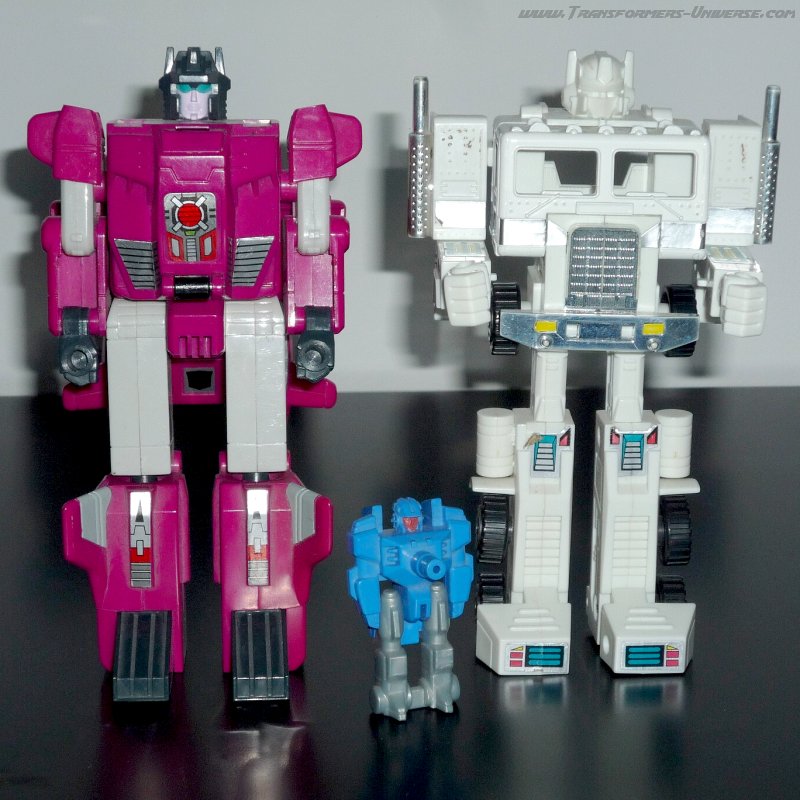 Partner / Zubehör: In 1987 kamen erstmals „Sidekicks“ in die TF Welt. Mit den Targetmaster wurden gleichzeitig die Headmaster eingeführt, kurz darauf die Powermaster. Diese kleinen Kerle fand ich schon damals nicht so besonders, wobei die Targetmaster am schlimmsten waren. Als Figuren machen sie eh nicht viel her, da sie zu klein sind. Ich weigere mich auch noch bis heute, sie als eigenständige Figuren in meiner bescheidenen Sammlung zu zählen.
