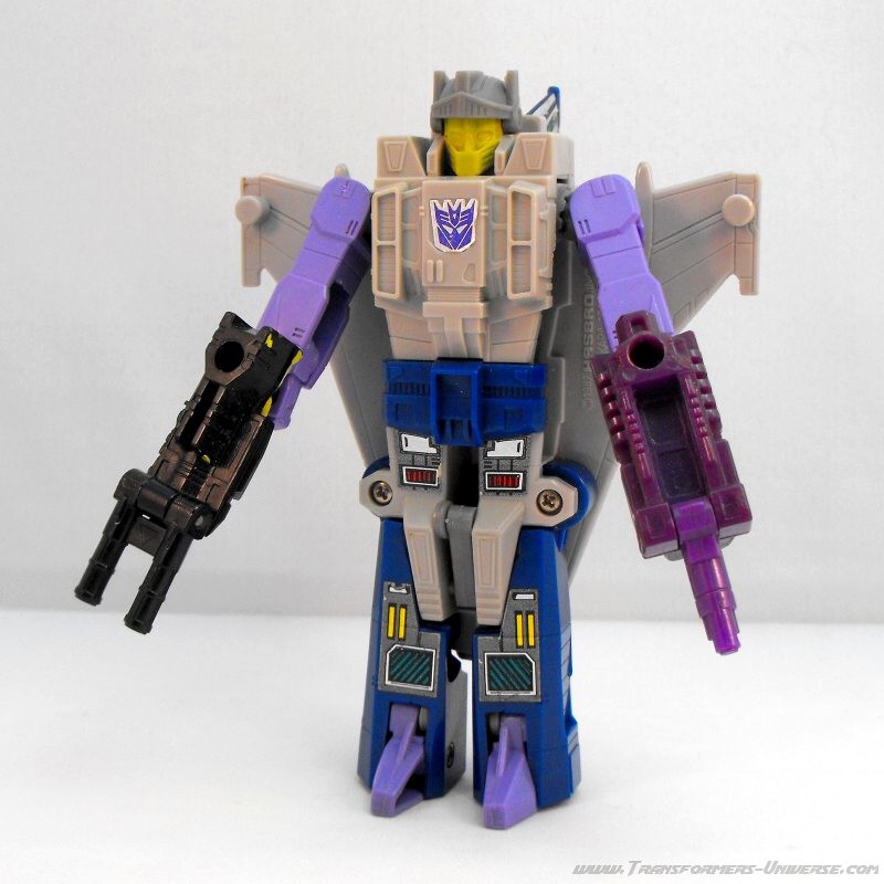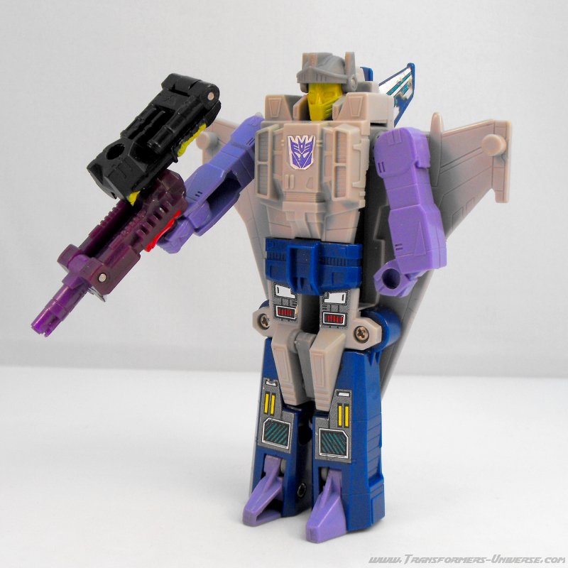 Der coolste Decepticon, der je einen Autobot zermalmt hat. Glaubt das Geheimnis des Böse-seins ist es, "BÖSE" zu sein. Immer im Trend und fasziniert von irdischen Modeerscheinungen. Versucht immer dazu zu gehören, selbst wenn es unmöglich ist. Er ist so damit beschäftigt cool zu sein, dass er selten an Kämpfen teilnimmt. Bildet ein Team mit Sunbeam, einem sonnengespeisten Herumtreiber, der sich in eine Lichtblitz-Waffe verwandelt, und Zigzag, der sich in etwas ungenaues, doppelläufiges Elektrostatisches Überladungsgewehr verwandelt.