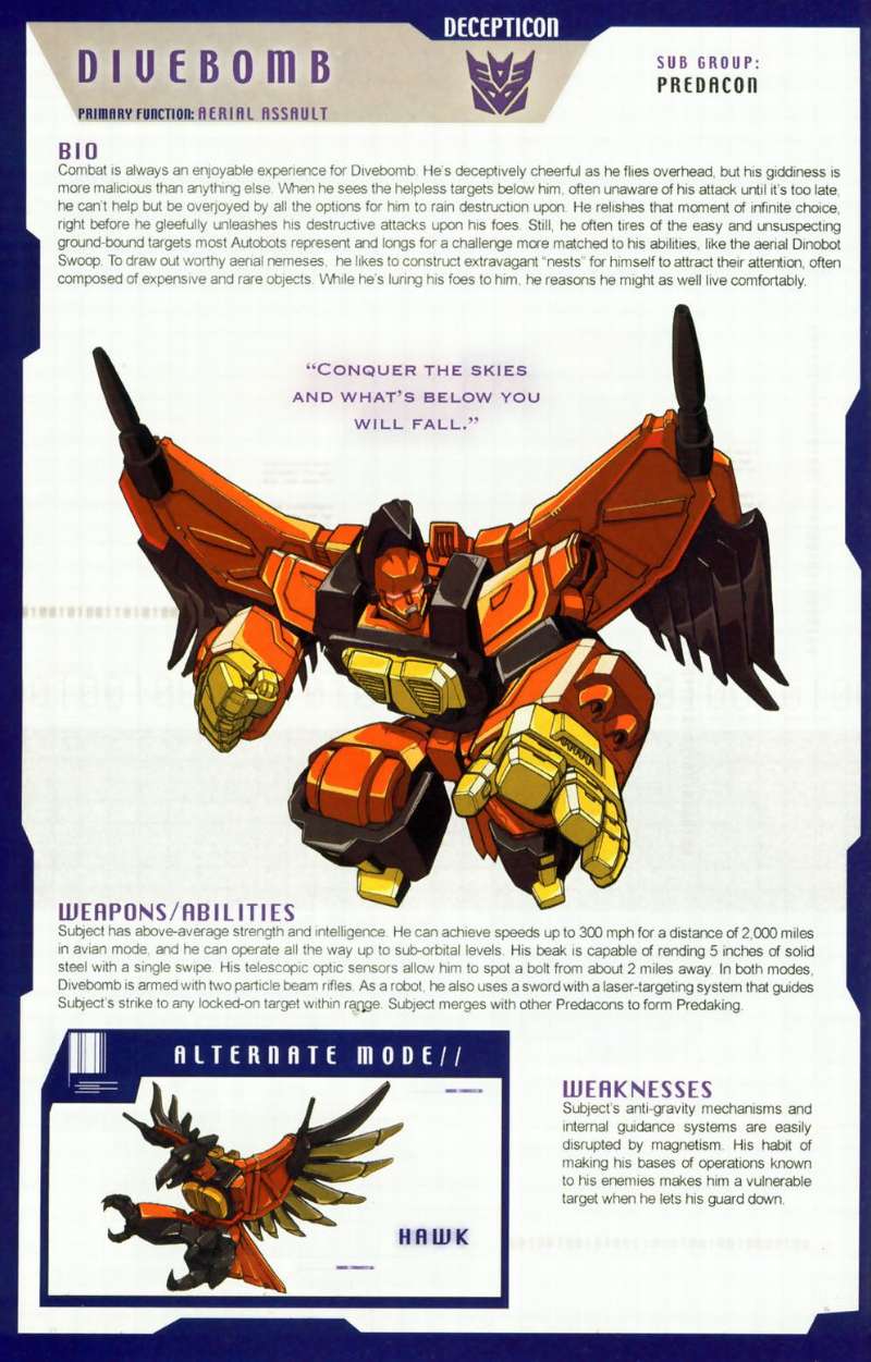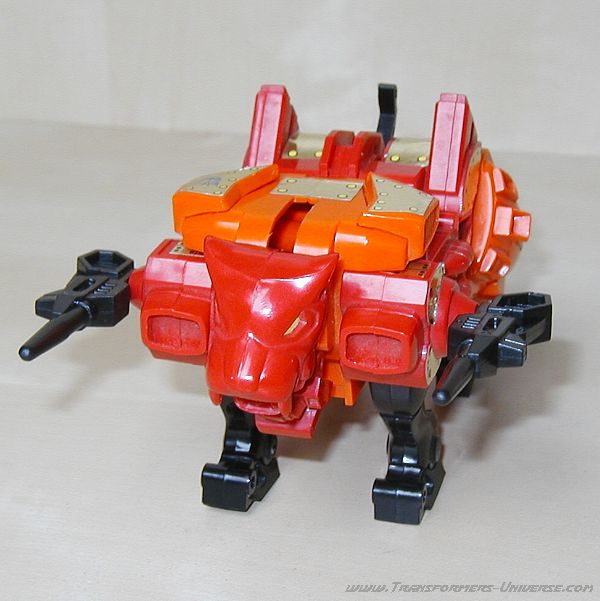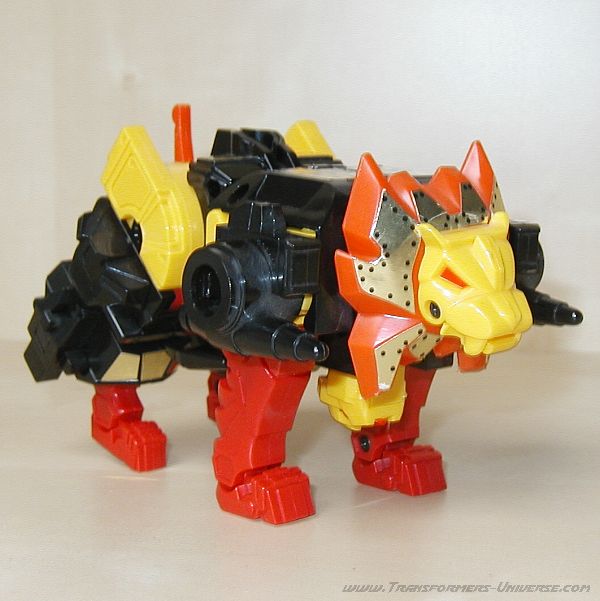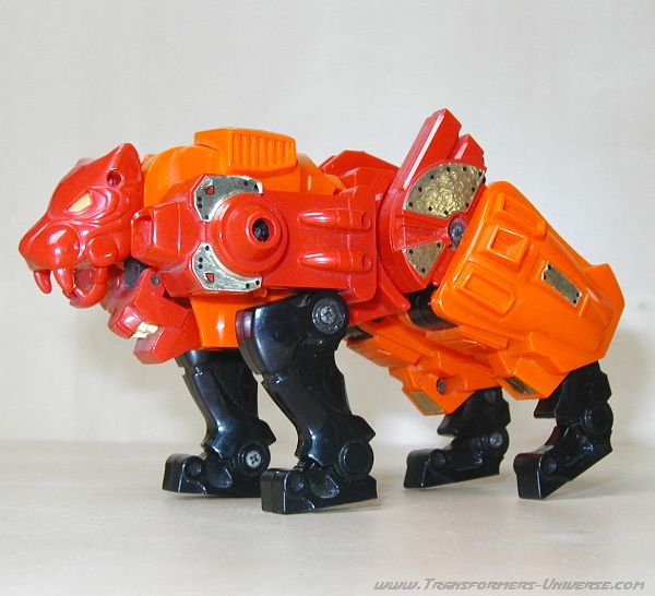 Biest Modus: Die Predacons verwandeln sich in fünf unterschiedliche Tiere. Razorclaw wird zum Löwen, Divebomb zum Falken, Headstrong zum Rhinozeros, Rampage zum Tiger und Trantrum zum Stier. Streng genommen sind natürlich nur drei davon tatsächlich 'Predators' (Raubtiere), aber alle fünf bilden ihren jeweiligen Tiermodus ziemlich gut ab. Negativ fällt hier eigentlich nur Divebomb auf, dessen Falkenmodus eigentlich genauso aussieht wie sein Robotermodus, nur das er die Beine einklappt. Trotzdem, alle fünf sehen hier ziemlich gut aus, ganz besonders Razorclaw und Rampage, da sie am besten detailliert sind (Schwänze, bewegliche Kiefer, etc).