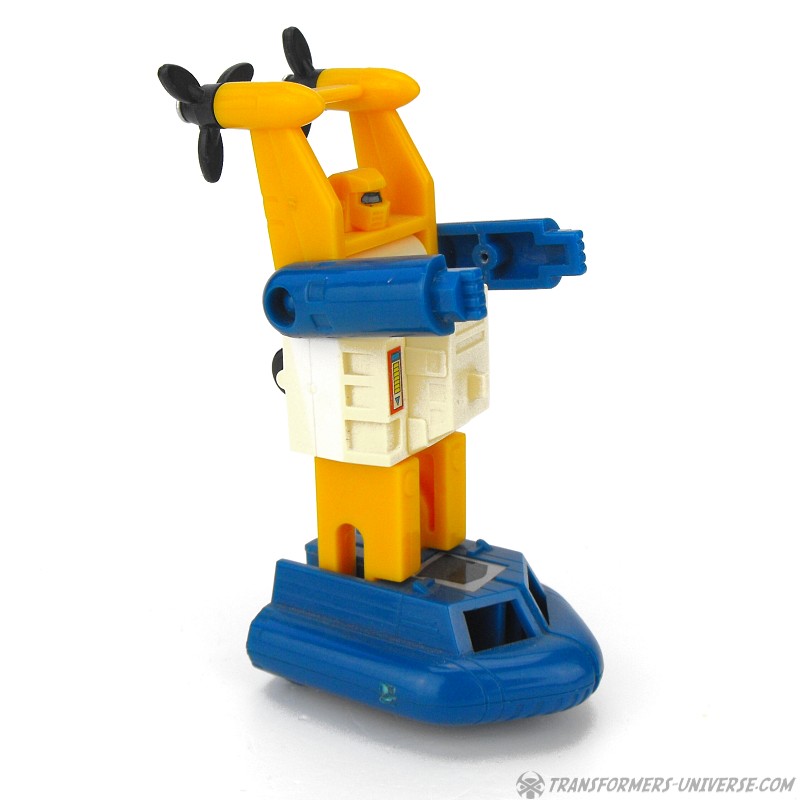 Alternativmodus: Seasprays Alternativmodus ist ein Luftkissenboot. Aufgrund der geringen Größe ist die Detailtreue hier natürlich begrenzt, aber es sieht ziemlich gut aus. Die Propeller drehen sich und die Räder unten erlauben, es über den Boden zu fahren. Alles in allem also ein anständiger, wenn auch unspektakulärer Fahrzeugmodus.