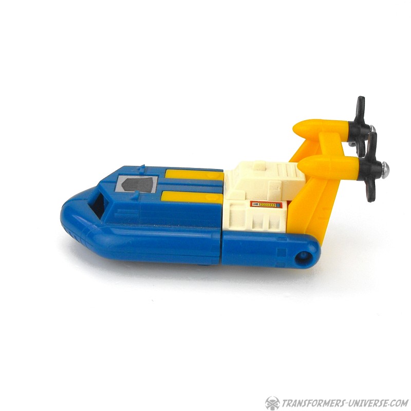 Hat mehr Freude an seiner Arbeit als die meisten Autobots. Liebt das Meer und all seine Kreaturen... unglücklich wenn er auf dem Land und in Roboterform ist. Liebt den Nervenkitzel von Seegefechten. Ist 120 Knoten schnell, Reichweite 4000 Meilen. Hat Sonar, Radar, und Unterwasser- sowie Boden-Luft-Laser, die er auch im Robotermodus nutzen kann. Räder erlauben begrenzte Fahrt an Land. Als Roboter nicht sehr stark oder beweglich.