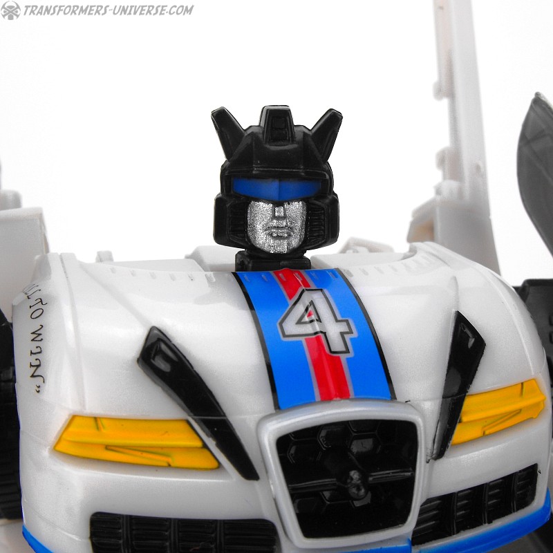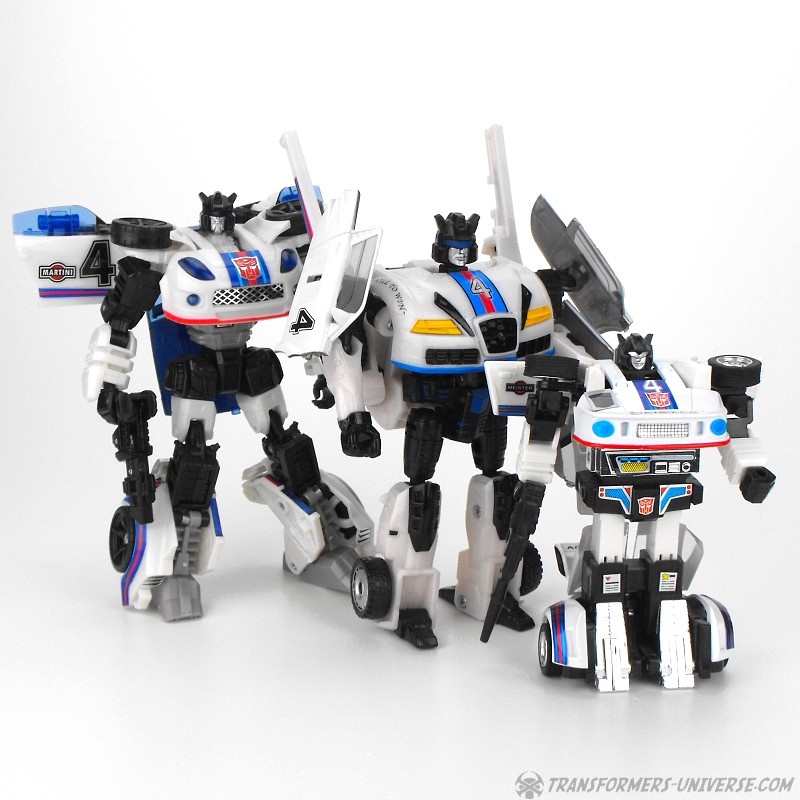 Bemerkungen: Jazz ist ein Repaint von Galaxy Force Autovolt, die vollständige Kritik findet ihr dort. Hier nur ein paar Worte zu den Unterschieden. Die Autovolt Figur war eine gute Wahl für Jazz, keine Frage, wenn ich persönlich ihn auch gerne als die Art aufgemotzen Schlitten gesehen hätte, in den sich Downshift verwandelt. Aber trotzdem, gute Wahl. Wenn man also Autovolt, Smokescreen, Shattered Glass Ricochet und Movie Jolt hat, dann kann man mittlerweile fünf von den Jungs nebeneinader stellen. Toll, oder? Ich hab' aber erst drei von ihnen und Ricochet wird wohl nicht Teil meiner Sammlung werden. Vielleicht aber noch Jolt.