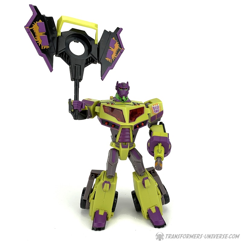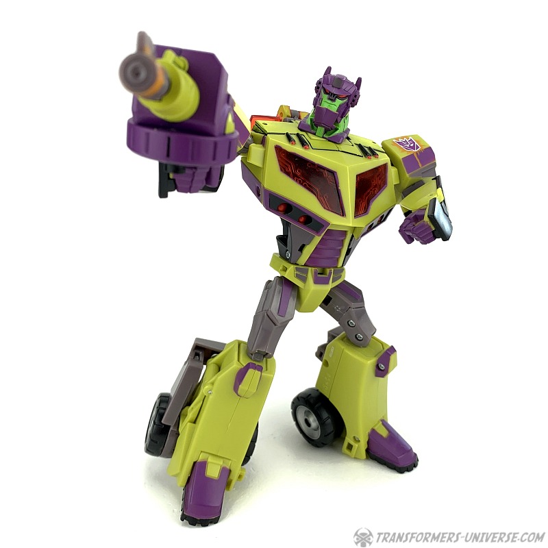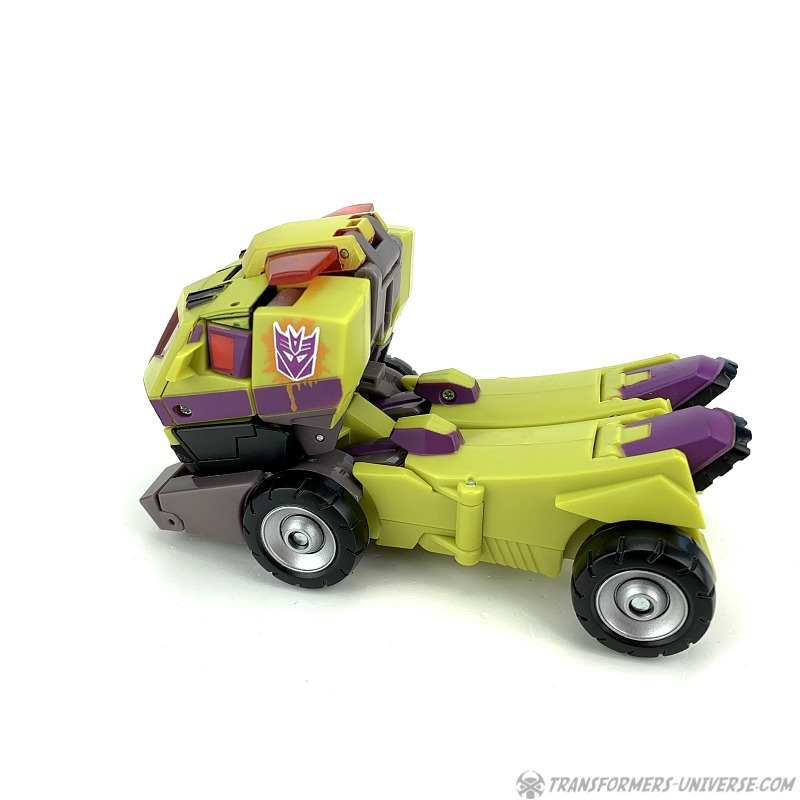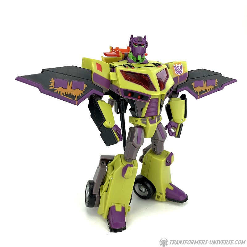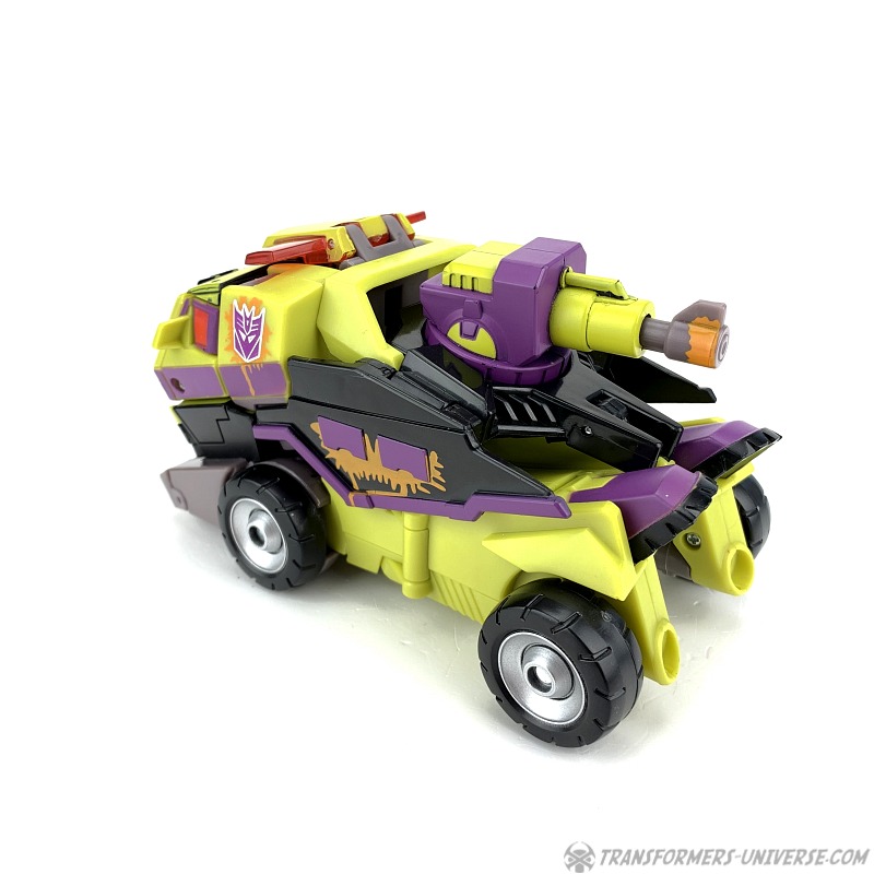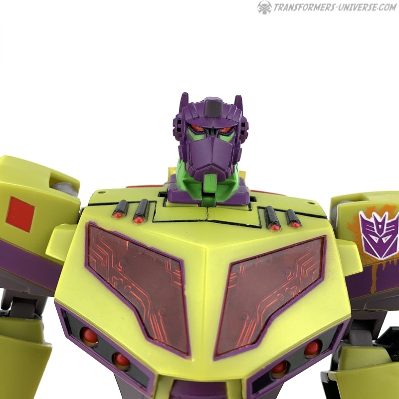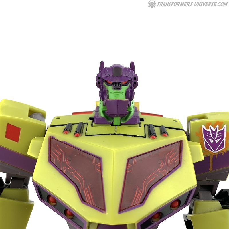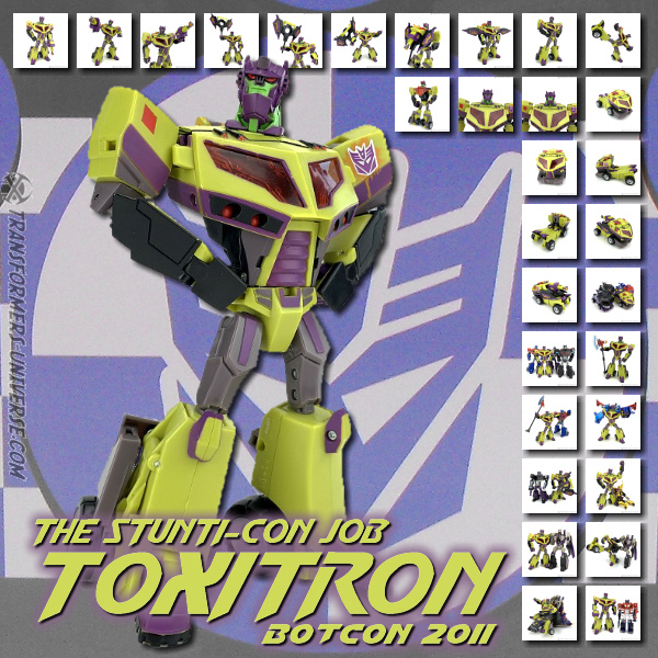 Toxitron hatte einen Auftritt in dem Botcon 2011 Exklusivcomic als der „Held“ der Motor Master Stunt Show. Der Plan Megatron zu befreien schlug fehl und Toxitron landete im Gefängnis. Aber erst nachdem er die Autobots schwer frustrierte, indem er sich weigerte zu kooperieren und stattdessen eine höhere Gefängnisstrafe verlangte. Egal, Toxitron ist nicht mehr und nicht weniger als ein weiteres Repaint, aber er ist ein sehr, sehr unterhaltsames Repaint und ein perfektes Beispiel dafür, wieso Animated eine der spaßigsten Spielzeugreihen in der gesamten Transformers Geschichte war.