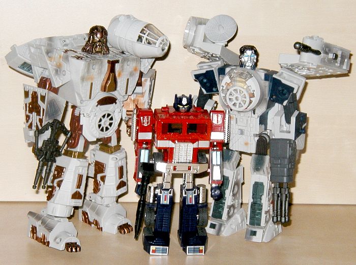 Bemerkungen: Han und Chewie kriegen das zweihundertste Review hier auf TFU, also dafür schonmal Bonuspunkte. Es gibt nur zwei Kleinigkeiten an ihnen auszusetzen: Zum einen die mangelnde Ähnlichkeit der Roboterkörper zu den Originalcharakteren und die nervigen Soundeffekte. Davon abgesehen durch und durch gute Transformer. Der Falke sieht gut aus und die separaten Roboter sind ordentliche Figuren ohne Probleme. Allen Star Wars und Transformers Fans empfohlen.