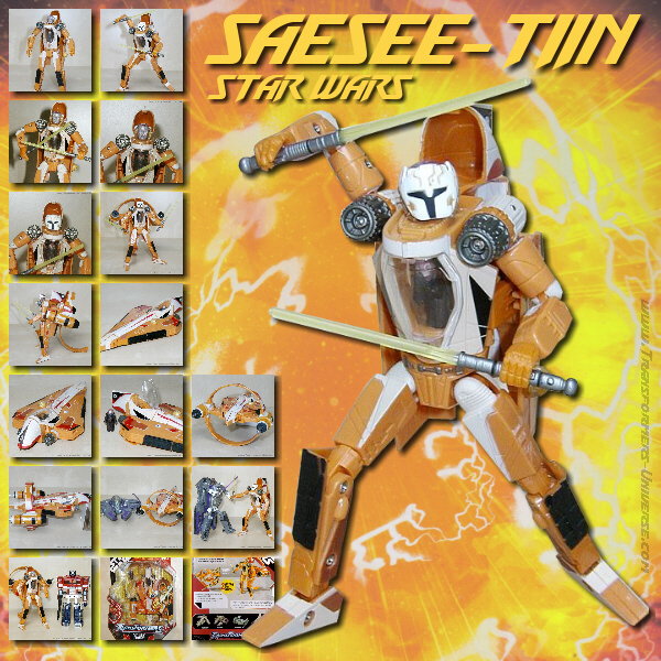 Saesee kam in allen Prequel-Episoden vor, saß aber hauptsächlich irgendwo im Hintergrund. In Ep III ist er einer der drei Jedi, die gegen Palpatine kämpfen und ungefähr nach einer halben Sekunde ziemlich tot sind. Er hat aber einen größeren Auftritt in der Clone Wars Mini-Serie, wo er mit einigen Klonkriegern ein feindliches Schiff erorbert. Er hat auch das Oberkommando über die Flotte, die am Ende der Serie, bzw. am Anfang von Ep III über Coruscant gegen die Separatisten kämpft. Den Alternativmodus fliegt er am Anfang von Clone Wars einmal kurz durchs Bild. Es ist also nicht Obi-Wans Jet, sondern tatsächlich sein eigener.