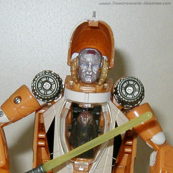 Bemerkungen: Ich habe nicht die geringste Ahnung, wer Saesee Tiin ist. Klar, er ist ein Jedi, aber kam er in den Filmen vor? Keine Ahnung. Ich glaube ihn mal in einem Comic gesehen zu haben, aber das kann nicht so toll gewesen sein und ich bin zu faul, um hier weiter nachzuforschen. Tiin ist eine von jenen Figuren, die einem langsam ans Herz wachsen. Anfangs gefiel er mir nicht so gut, aber je mehr ich mich mit ihm beschäftigte, desto besser fand ich ihn. Jetzt ist er einer meiner Lieblinge unter den Star Wars Transformern. Ein sehr guter, beweglicher Robotermodus, ein guter Alternativmodus und ein nettes Extra, das man je nach gusto benutzen oder weglassen kann. All das ergibt in Summe eine sehr gute Figur. Lasst nur den Helm zu, dann muss man sich das häßliche Gesicht nicht ansehen.