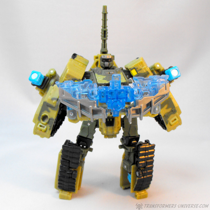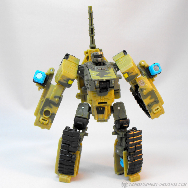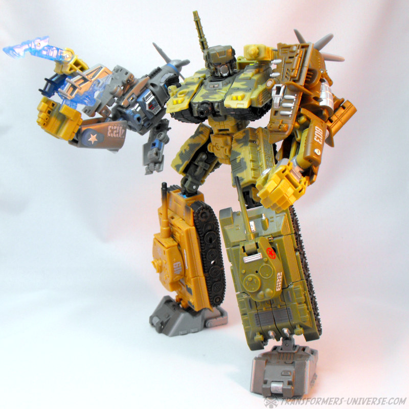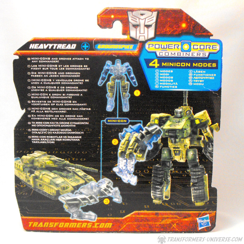 Power Core Modus: Wie alle nicht-Minicon Figuren der Power Core Combiner Reihe kann auch Heavytread zum Torso eines Combiners werden und beliebige PCC Drohnen als Gliedmassen verwenden. Die Verwandlung vom Roboter zum Power Core Torso ist relativ simpel; Heavytread legt die Arme ein, zieht die Beine etwas ein und tauscht den kleinen Kopf gegen einen größeren. Okay, der Rucksack ist noch etwas anders, so ragt das Geschütz jetzt über der einen Schulter hoch, während über der anderen eine Art Raketenwerfer in Stellung geht.