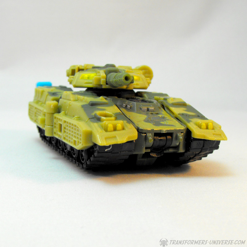 Alternativmodus: Wie man im Robotermodus schon recht eindeutig sieht, verwandelt sich Heavytread in einen Panzer, genauer gesagt einen Merkava Panzer, ein israelisches Modell, das seit 1979 im Einsatz ist und auch heute noch. Ist es signifikant dass ein friedliebender, sanfter Autobot sich einen Panzer als Altmodus sucht und dann noch einen, der in den letzten 30 Jahren wohl öfter im Einsatz war als jeder andere Nachkriegspanzer?