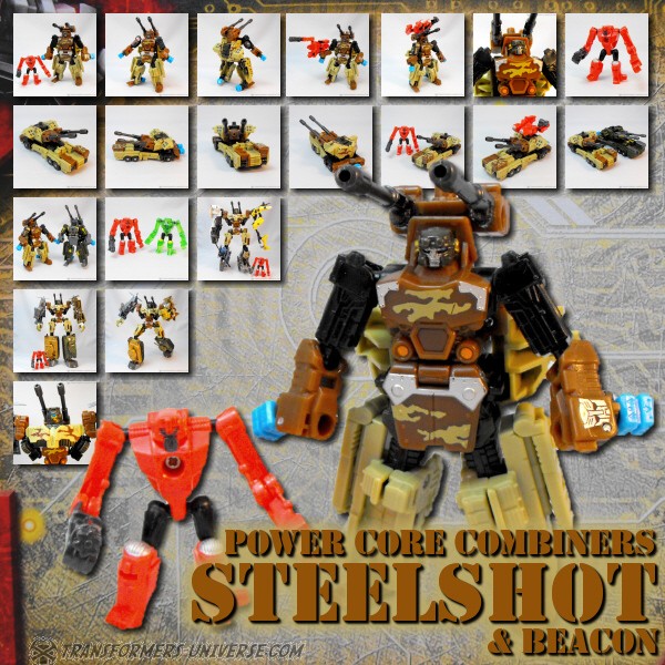 Schon bevor er ein Power Core Commander wurde war Steelshot der Meister des Langstreckenkampfes. Nun da Beacon ihm als Aufklärer dient, nutzt er seine mächtigen Kanonen um Ziele auf bis zu 100 Meilen Entfernung zu bombardieren und sie somit für einen Autobot Angriff weichzuklopfen.