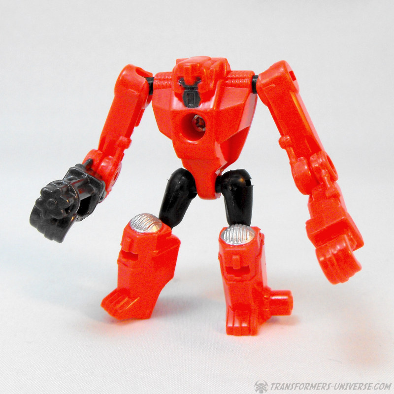 Partner: Beacon ist ein größtenteils roter Minicon mit einem an einen Gorilla erinnerden Robotermodus. Sehr lange Arme, eine davon endet in einer Minigun, und ein leicht affenartiges Gesicht. Gar nicht übel. Wie alle PCC Minicons wird er als Quad-Changer beworben, also ein Roboter mit je einem Waffenmodus für den Roboter- und Fahrzeugmodus seines Partners, sowie einem Rüstungsmodus. In der Realität hat Beacon aber gerade mal einen Alternativmodus, zwei maximal. Er wird zu... irgendwas. Ich bin mir ehrlich nicht sicher. Die Minigun am Ende des Arms ist natürlich immer präsent und diese zwei Scheinwerfer an seinen Knien... ehrlich, ich hab‘ keine Ahnung. Er kann in jedem Modus an Steelshot andocken oder als eine Art Waffe in Händen gehalten werden, nichts davon sieht wirklich gut aus. Außerdem passt die grellrote Farbe auch nicht wirklich toll zu Steelshots Wüstentarnfarben. Unterm Strich hier also: Beacons ist mit Sicherheit nicht der beste der PCC Minicons und passt auch nicht wirklich zu Steelshot.