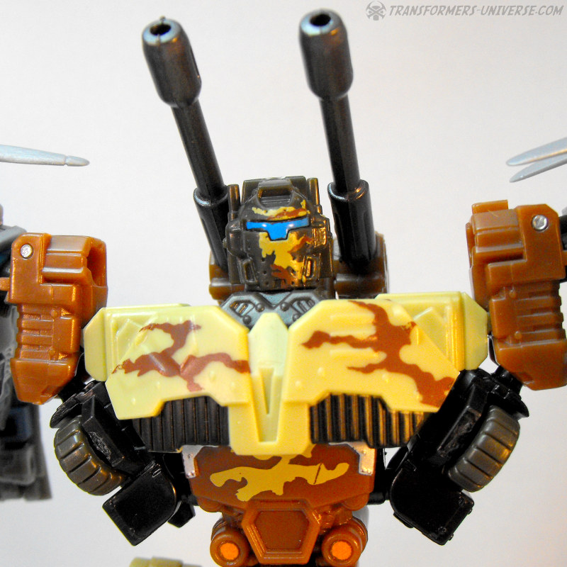 Bemerkungen: Die erste PCC Figur, die ich je hatte, war Bombshock, der großen Anteil daran hatte mich von der Serie zu überzeugen, auch wenn sie Null Medienpräsenz hatte. Steelshot ist als Repaint natürlich genauso gut und ob man jetzt Bombshocks dunklere Farben dem Wüstentarn-Look von Steelshot vorzieht oder nicht ist reine Geschmackssache. Die PCC Reihe ist inzwischen so ziemlich vergessen, glaube ich, was an der bereits erwähnten fehlenden Medienpräsenz liegen dürfte, sowie an der Mittelmäßigkeit vieler PCC Figuren. Insgesamt finde ich die Serie aber nach wie vor gut und es gibt noch so einige Figuren zu rezensieren. Und was Steelshot angeht: wer jetzt nicht das PCC Konzept als Ganzes ablehnt, der sollte sich entweder ihn oder Bombshock holen, je nachdem welche Farbgebung man mehr mag.