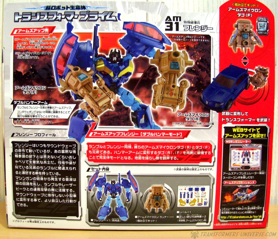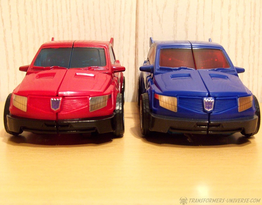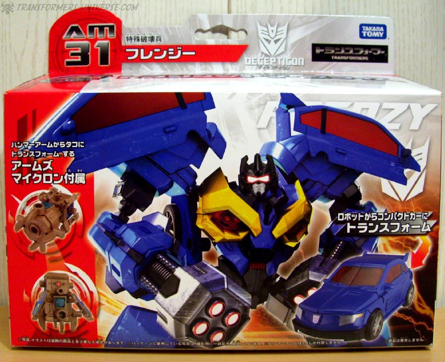 Vorwort: Als Hasbro eine Figur namens Rumble angekündigt hat, war die Verwunderung doch groß und die Ernüchterung kam dann auch schnell hinterher. Die Figur war leider ein Beispiel dafür, dass man neben wenig Farbe zur Abwechslung auch mal keine nehmen kann. Obgleich einem ziemlich guten Robotermodus sollte dann wohl doch ein blaues Auto mit zwei unbemalten Waffen reichen. Und Frenzy sollte es auch keinen geben. Natürlich nur eine Frage der Zeit bis Takara diese Figur aufgegriffen hat, um deren Version zu bringen. Doch auch hier folgte schnell die allgemeine Meinung, dass die Hasbro Version wohl besser aussieht obwohl vorher noch verdammt dazu, dass sie eigentlich nach gar nichts aussieht. Mal sehen, was jetzt Sache ist. Ach und Takara scheint ein Herz für Frenzy zu haben. Wer jetzt der Farbe nach wie heißt und welcher ist, sei dem persönlichen Vorzug überlassen.