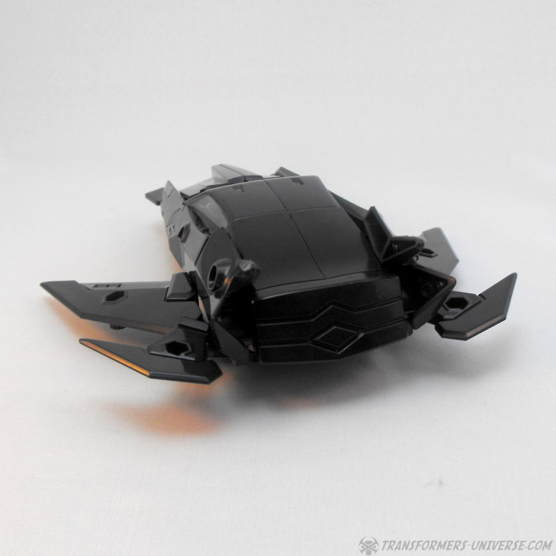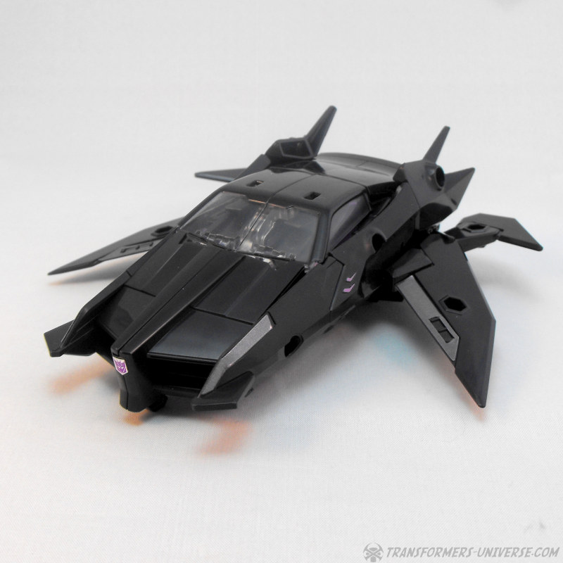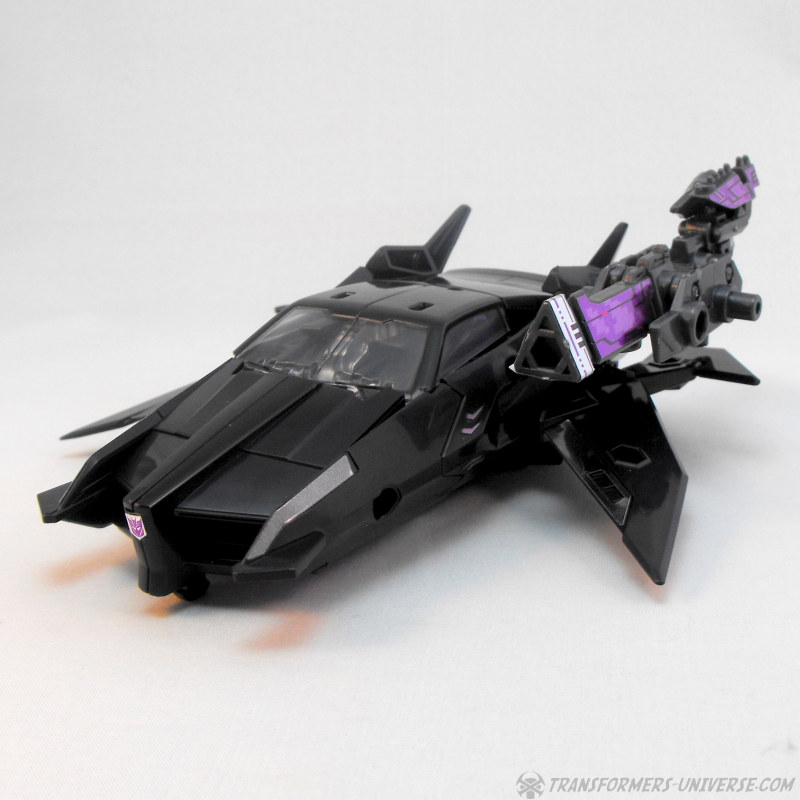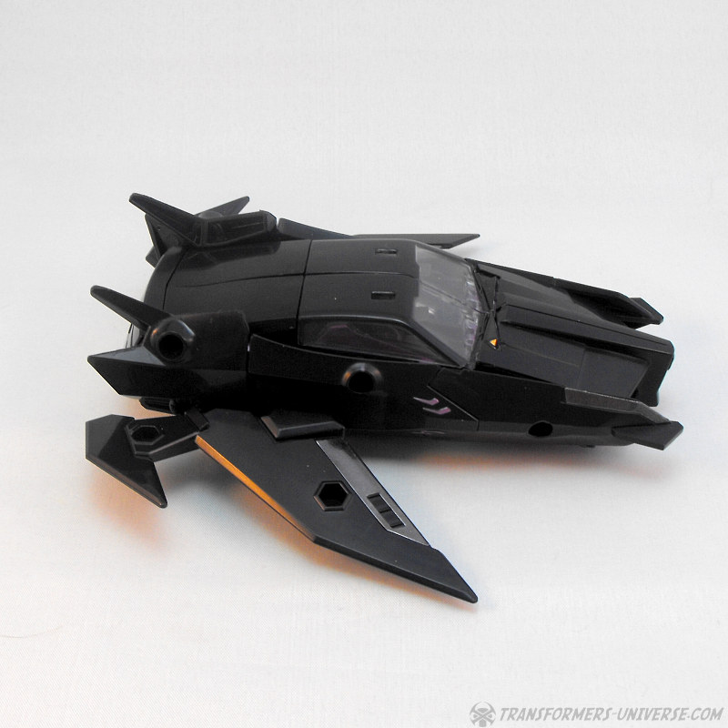 Viel mehr kann ich hier kaum schreiben. Keine sichtbaren Roboterteile, was immer ein Plus ist, aber davon abgesehen ist es halt nicht mehr und nicht weniger als ein Auto mit Flügeln. Man kann die Arms Micron Waffe rechts wie links an der Seite oder dem Flügel befestigen, um dem Jet Feuerkraft zu geben (und seine Aerodynamik komplett zu ruinieren) und... ja, das war’s dann eigentlich. Ein solider, auf seltsame Art interessanter Fahrzeugmodus.