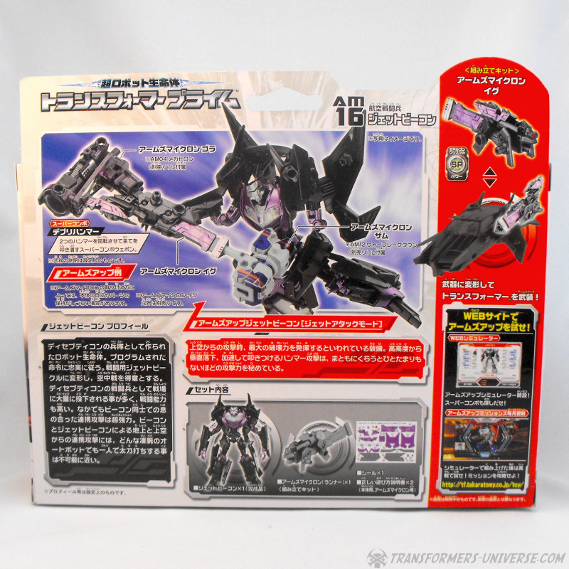 Jet Vehicons sind die Luftwaffe des Decepticon Imperiums und werden vom finsteren Starscream in die Schlacht geführt. Geschmiedet im Herzen des Dunklen Energon Nebels existieren sie einzig für die Schlacht und ihre gewaltige Kraft wird noch verstärkt durch die feurige Feuerkraft ihrer Arms Micron Gefährten, den Igu. Igus werden von Jet Vehicon Kadetten auf dem Planeten Iguwa gejagt und abgerichtet, diese dann dank ihrer nun extrem verstärkten dunklen Kräfte den Streitkräften beitreten können. Cybertrons... äh, Autobots, hütet euch! Nur wenige können einer vollen Breitseite Super-Hyper-Dunkel-Energie aus einem vollgeladenen großkalibrigen Igu widerstehen.