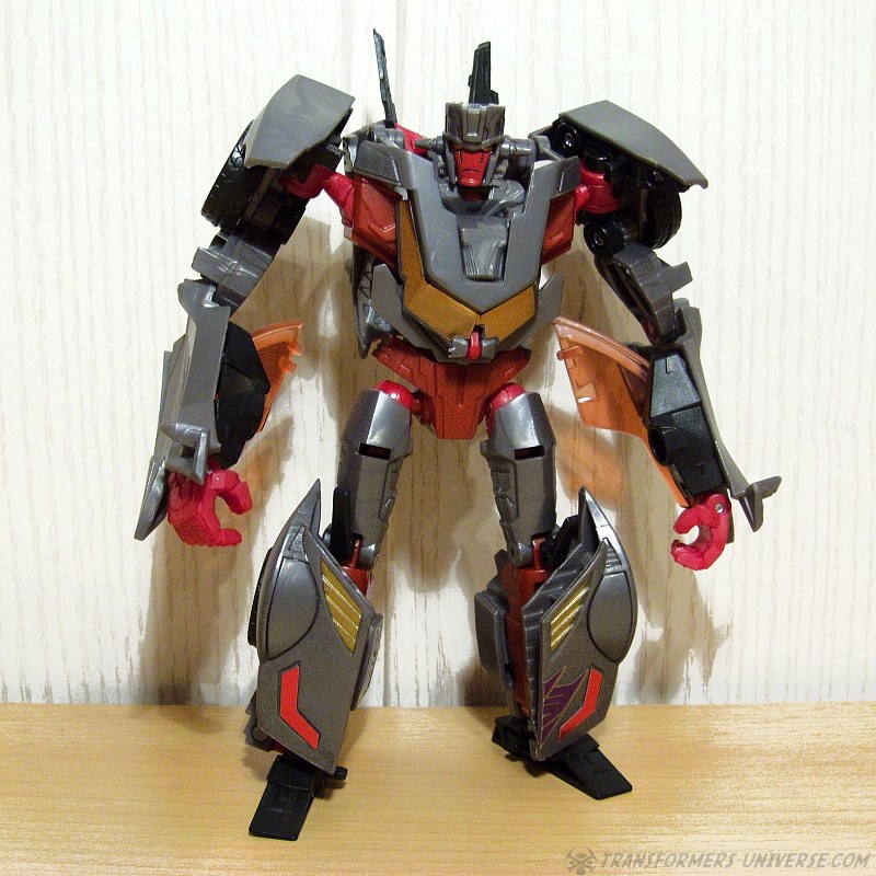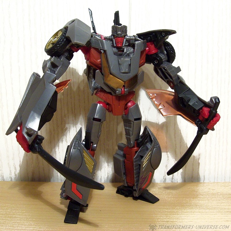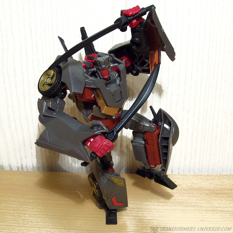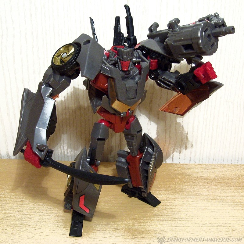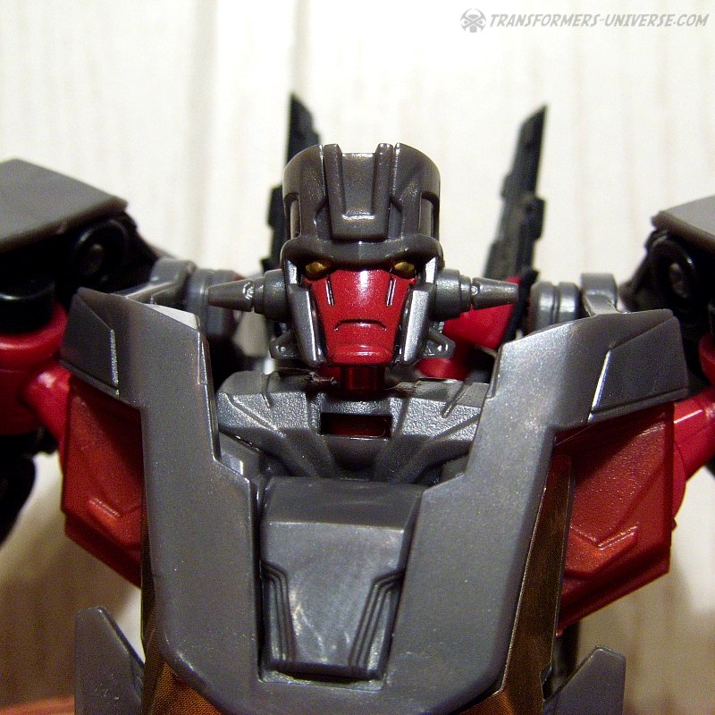Robotermodus: Auch hier keine wirklichen Unterschiede, abgesehen von der Farbe und natürlich dem neuen Kopf, den er erhalten hat. Angelehnt an seine G1 Vorlage, aber irgendwie etwas seltsam. Nicht schlecht, aber seltsam. Die Kombination aus den grauen Fahrzeugteilen und den schwarzen und roten Roboterteilen funktioniert, ist aber nichts Besonderes an sich.