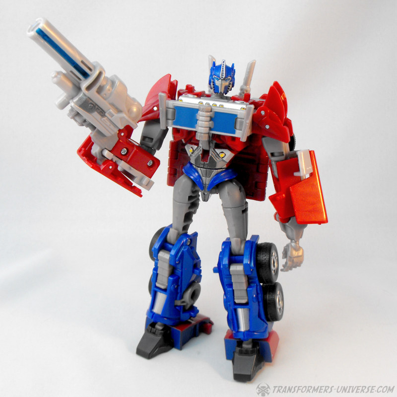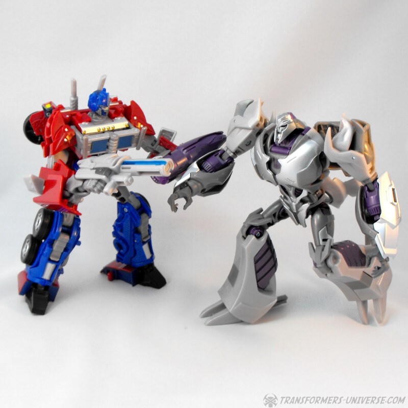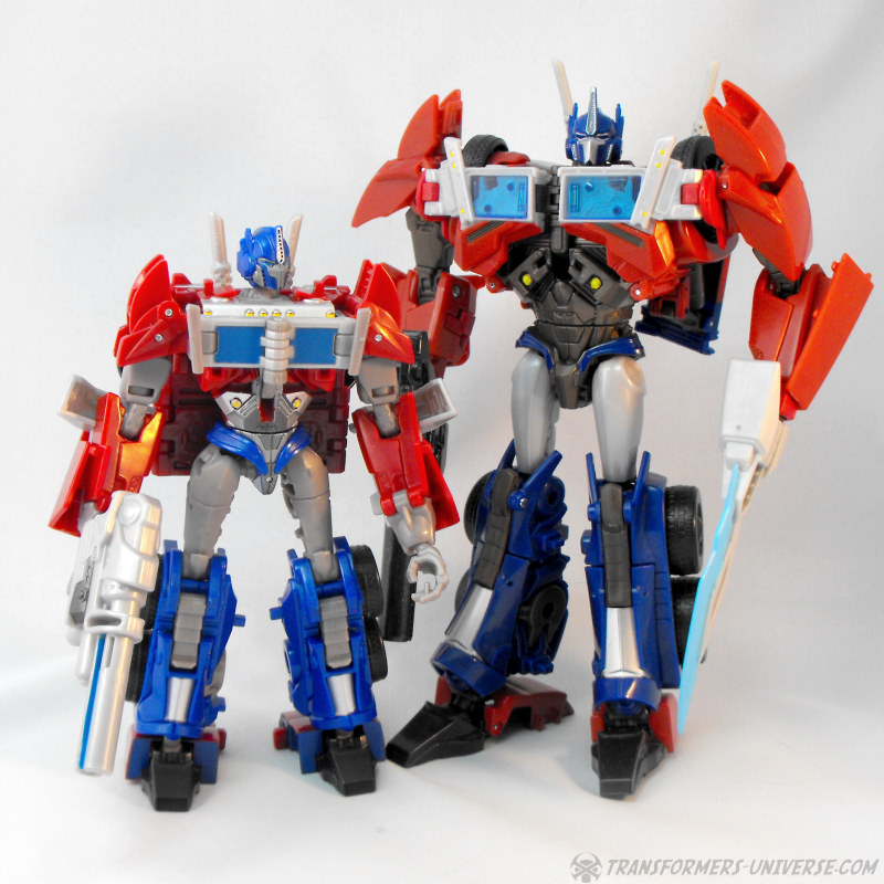 Bemerkungen: Als Transformers Prime ursprünglich angekündigt wurde, gab es ja mal das Gerücht, es würde gar keine Spielzeuge zu der Serie geben. War natürlich Stuss und als die San Diego Comic Con 2011 stattfand, gab es dort auch die erste Prime Figur zu bewundern. Optimus Prime, natürlich. Kurz darauf kamen dann die First Edition Figuren, insgesamt 14, mit ganzen drei Decepticons dabei und... vier Optimus Prime. Ja... okay, ich weiß, die Serie heißt „Prime“ und so, aber wirklich... vier Optimus Figuren in einer Serie von insgesamt 14 (bzw. fünf von 16, wenn man die japanischen Versionen der Voyager Figuren hinzunimmt)? Ist das nicht ein wenig übertrieben?