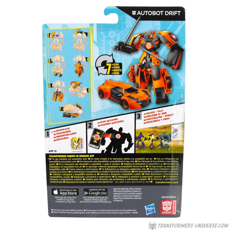 Bemerkungen: Zum Zeitpunkt dieser Rezension ist Drift noch nicht im neuen RID Cartoon aufgetreten, insofern kann ich nichts darüber sagen, was er dort für eine Rolle spielt (also außer Samurai). Ich hoffe mal dass der Charakter dort mehr zur Geltung kommt als in Age of Extinction, wo er ja nur schmückendes Beiwerk war (und ein Samurai). Was die Figur aber angeht ist sie glaube ich momentan mein Liebling unter den RID 2.0 Figuren. Okay, für eine Deluxe Figur ist sie eher klein und könnte etwas mehr Details vertragen, aber insgesamt gefällt sie mir sehr gut. Drift erschien in großer Zahl bei Galeria Kaufhof, dort der bisher einzige Vertreter der Warrior-Klasse, somit habe ich mal in der Mittagspause einen mitgehen lassen. Kein Grund es zu bereuen. Eine klare Empfehlung an alle, die von der vereinfachten Ästhetik der RID 2.0 Reihe nicht total abgestoßen sind.
