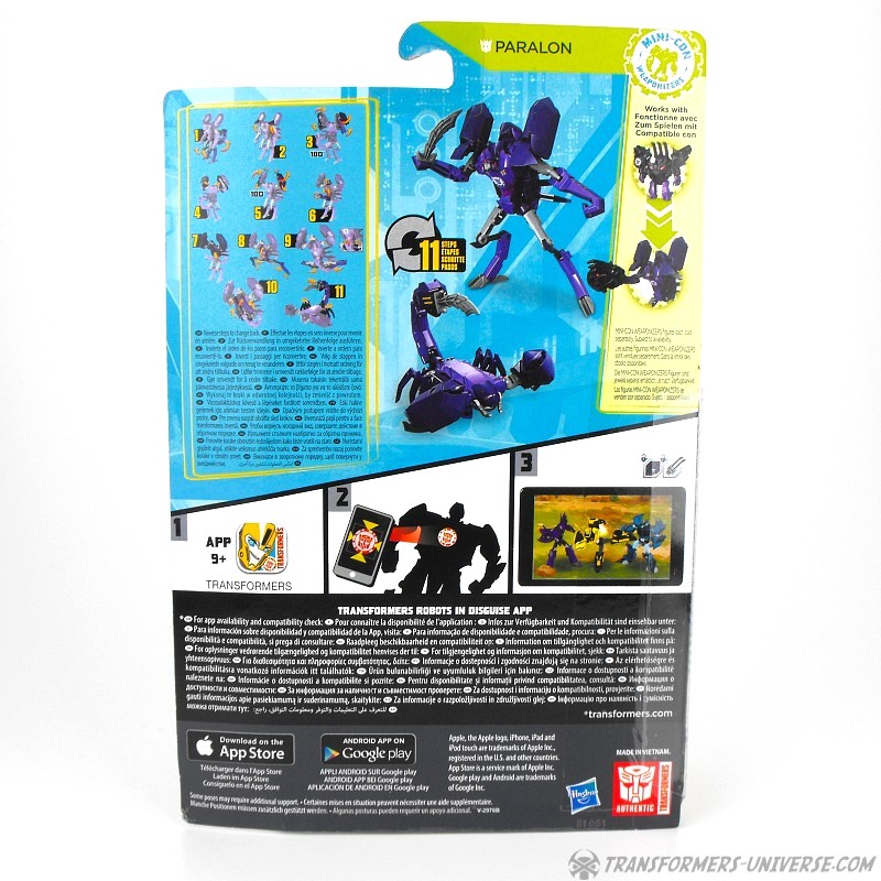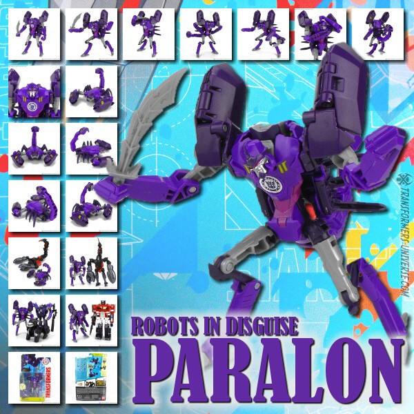 Bemerkungen: Interessante Geschichte: Paralon hier ist ein Toys R’Us exklusives Repaint von RID Scorponok. Aber während Scorponok in der TV Serie vor Paralon erschien, schaffte Paralon es zuerst auf die Spielzeugregale. Wieso? Keine Ahnung, vielleicht ging Toys R’Us einfach die Geduld aus. Auf jeden Fall gehört Paralon zu einer Bande von Plünderern, die auf der Erde cybertronische Artefakte bergen (kein wirklich schwerer Job, sind wir doch die Müllhalde von Cybertron). Zum ersten Mal sahen wir ihn, wie er die alte Autobot Basis aus Transformers Prime durchstöberte und dabei auf Bumblebee und sein Team traf.