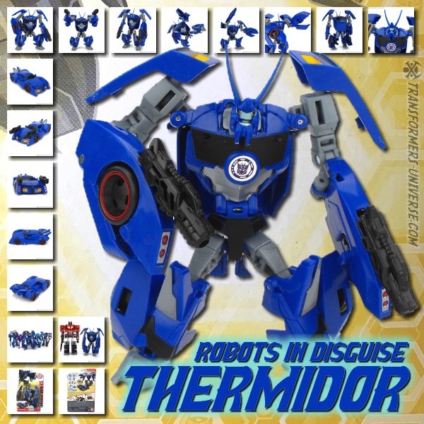 Bemerkungen: Thermidor war ein Mitglied der Scavengers, den Bösen aus der zweiten Hälfte der zweiten Staffel von Robots in Disguise. Er war früher mal Piratenkapitän, bis ihm von Clawtrap sein Schiff abgenommen wurde. Außerdem redet er wie ein Pirat, also ständig. Am Ende wurden er und die Scavenger besiegt und von Optimus Prime nach Cybertron zurücktransportiert, um ihrer gerechten Strafe zugeführt zu werden.