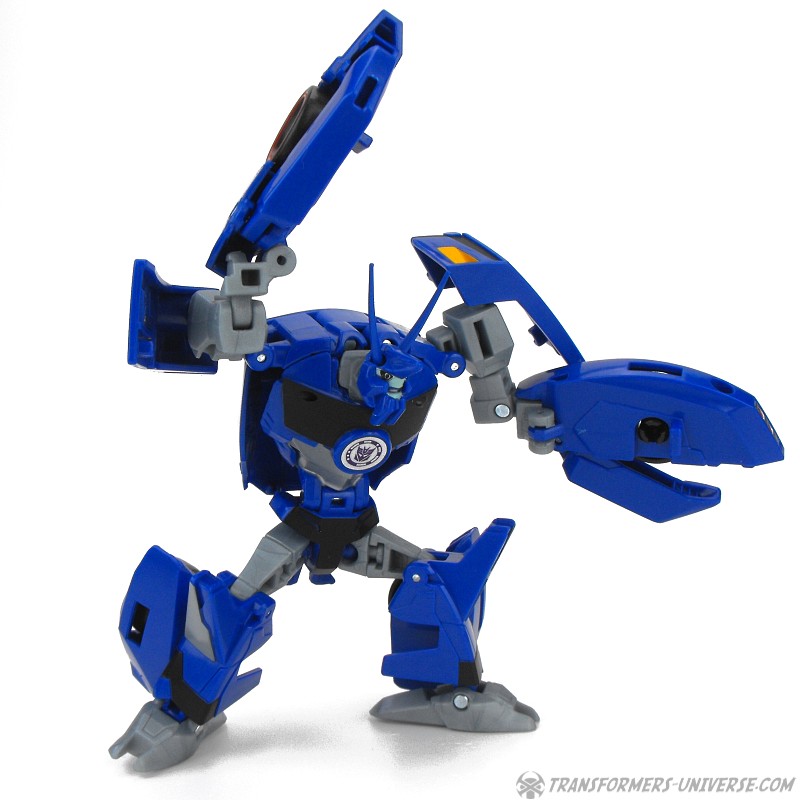Die Beweglichkeit ist gut, hier keine Beschwerden. Speziell die Arme mit den Hummerscheren können in alle möglichen Posen gebracht werden und man kann außerdem Thermidors zwei schwarze Waffen darauf anbringen. Die Detaillierung ist minimalistisch, wie bei den meisten RID Figuren, was aber nicht weiter stört. Er sieht einfach cool aus. Insgesamt also ein toller Robotermodus, ein cooles Design, keine Beschwerden. Beide Hummerscheren hoch!