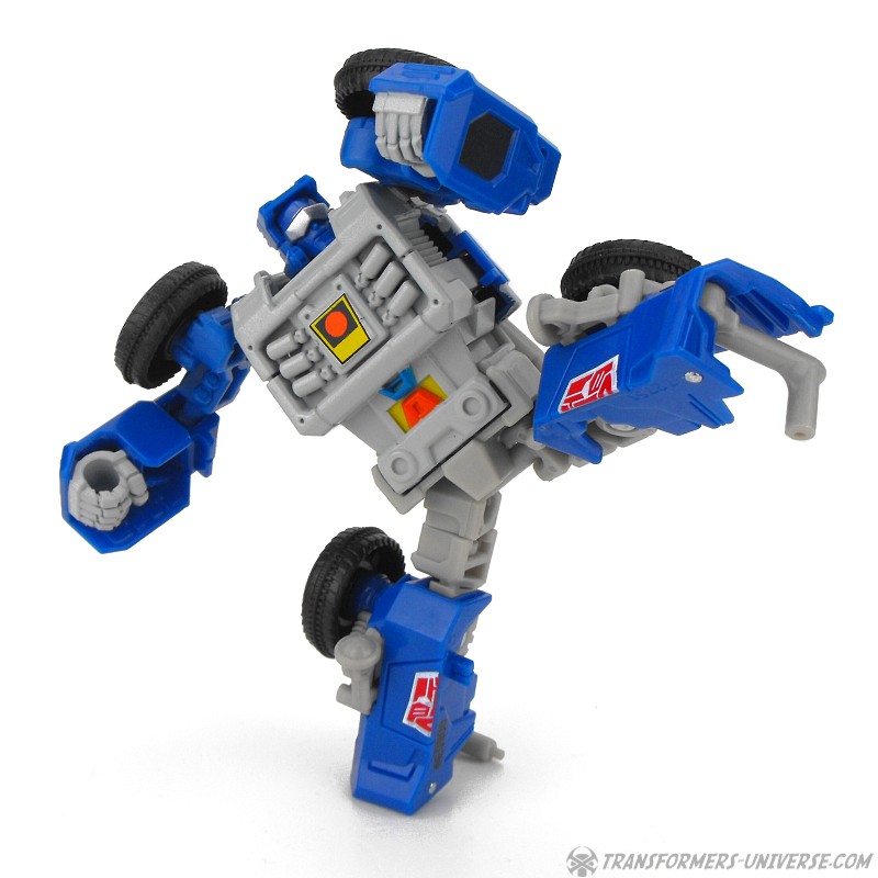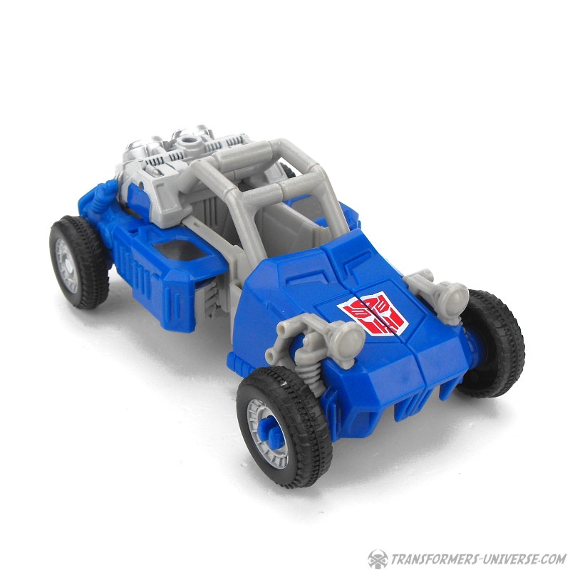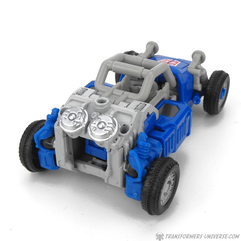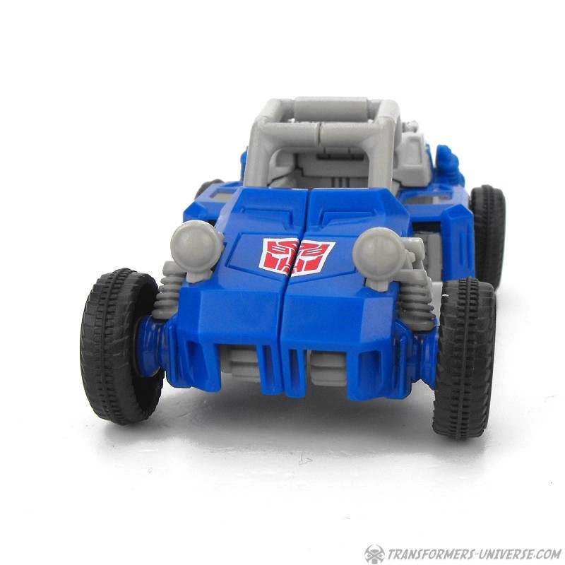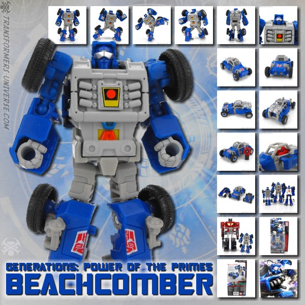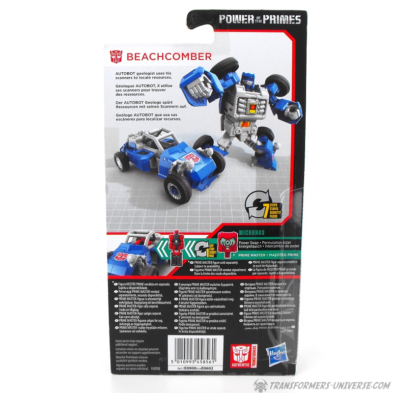 Alternativmodus: Beachcomber verwandelt sich in den bekannten blauen Beach-Buggy, den wir ebenfalls vom TV Bildschirm kennen. Das Auto faltet sich schön zusammen und bietet Platz für einen Titan Master oder Prime Master als Fahrer. Und obwohl Beachcomber keine Waffe trägt, gibt es hier auch die Option eine hinten auf dem Motorblock einzustöpseln, wenn man denn so will. Unterm Strich somit eine gute Adaption des klassischen Beachcomber Fahrzeugmodus. Keine Beschwerden.