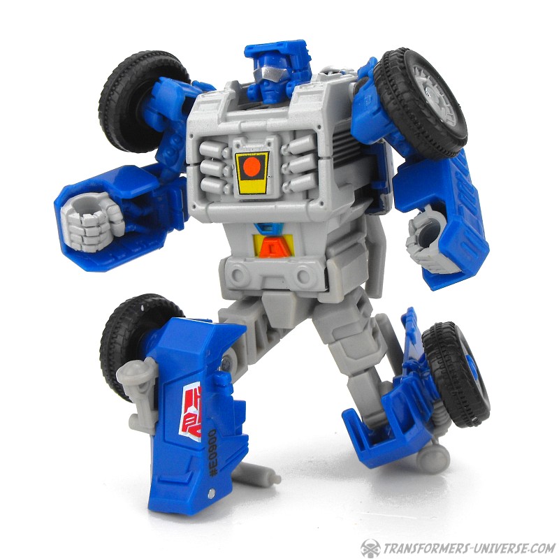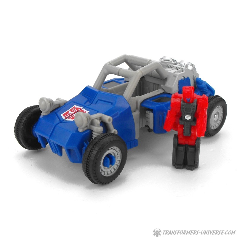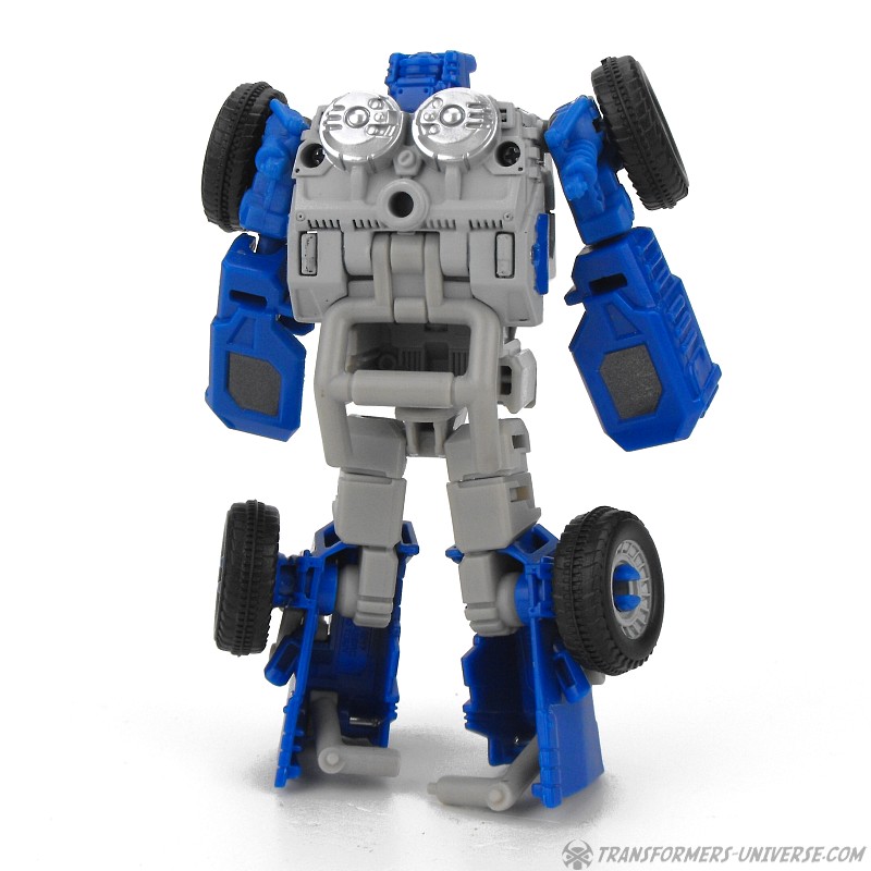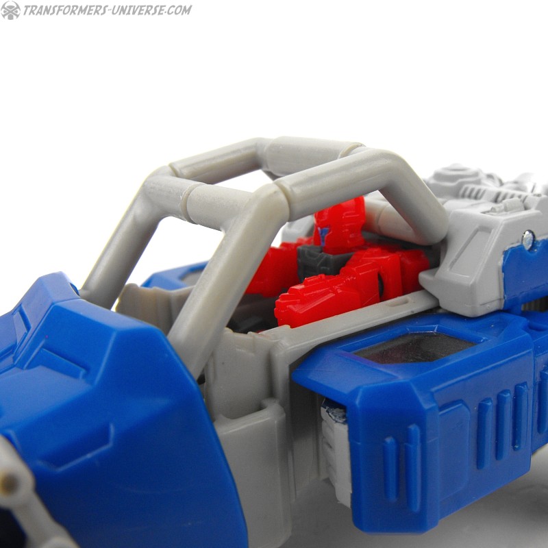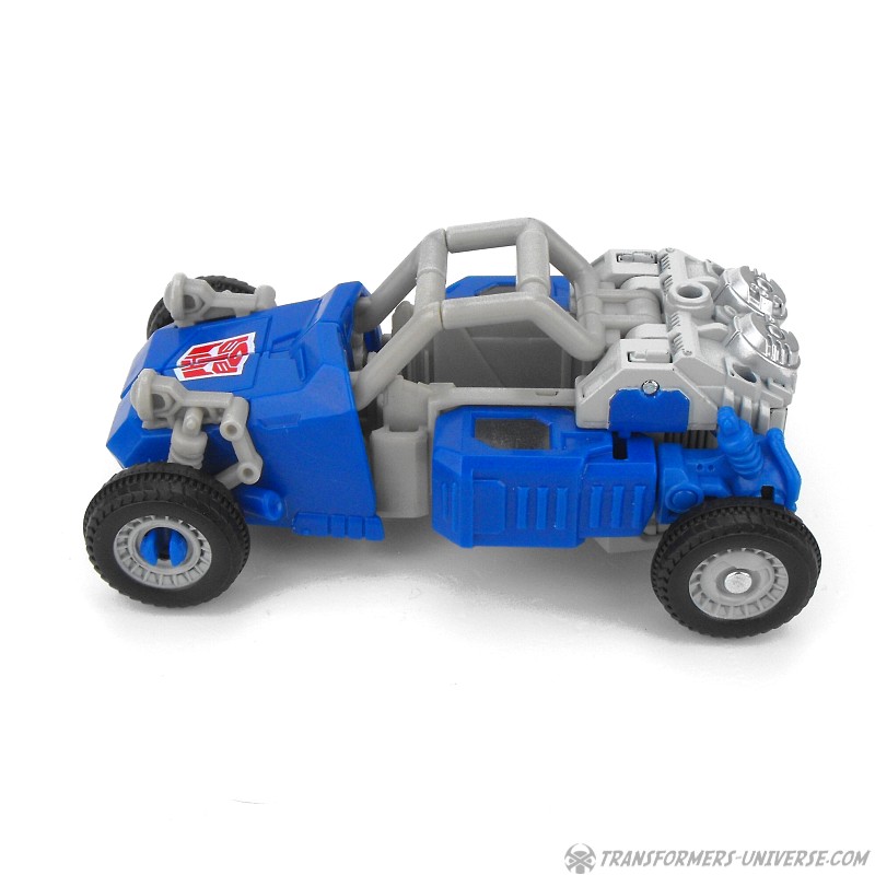 Alternativmodus: Beachcomber verwandelt sich in den bekannten blauen Beach-Buggy, den wir ebenfalls vom TV Bildschirm kennen. Das Auto faltet sich schön zusammen und bietet Platz für einen Titan Master oder Prime Master als Fahrer. Und obwohl Beachcomber keine Waffe trägt, gibt es hier auch die Option eine hinten auf dem Motorblock einzustöpseln, wenn man denn so will. Unterm Strich somit eine gute Adaption des klassischen Beachcomber Fahrzeugmodus. Keine Beschwerden.