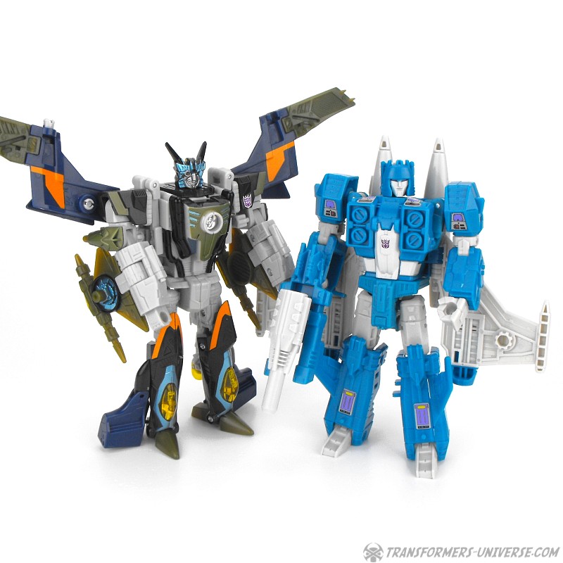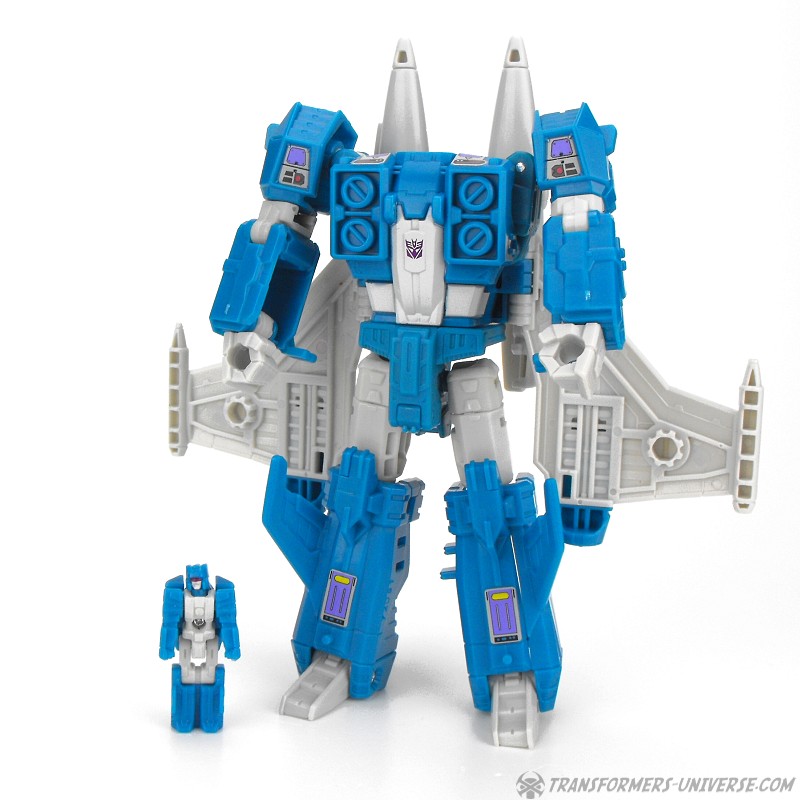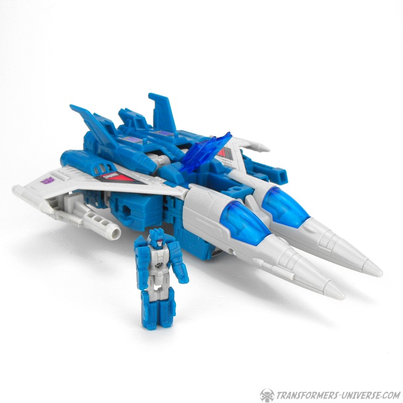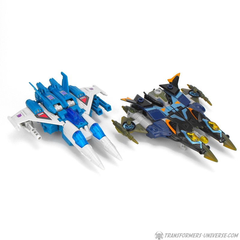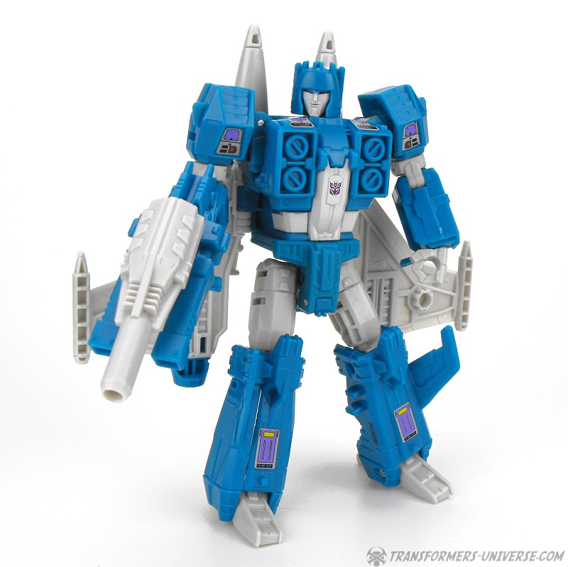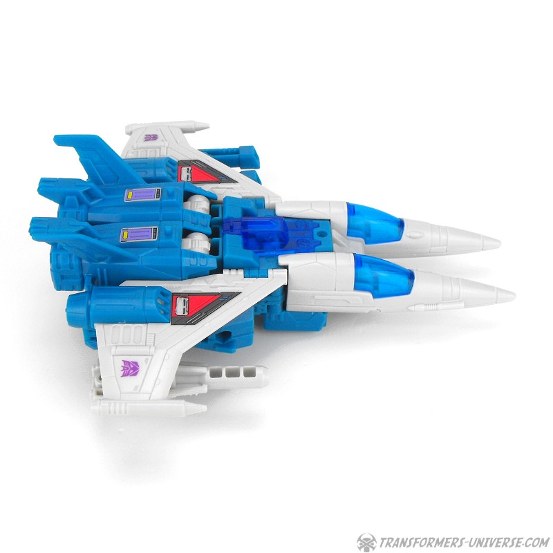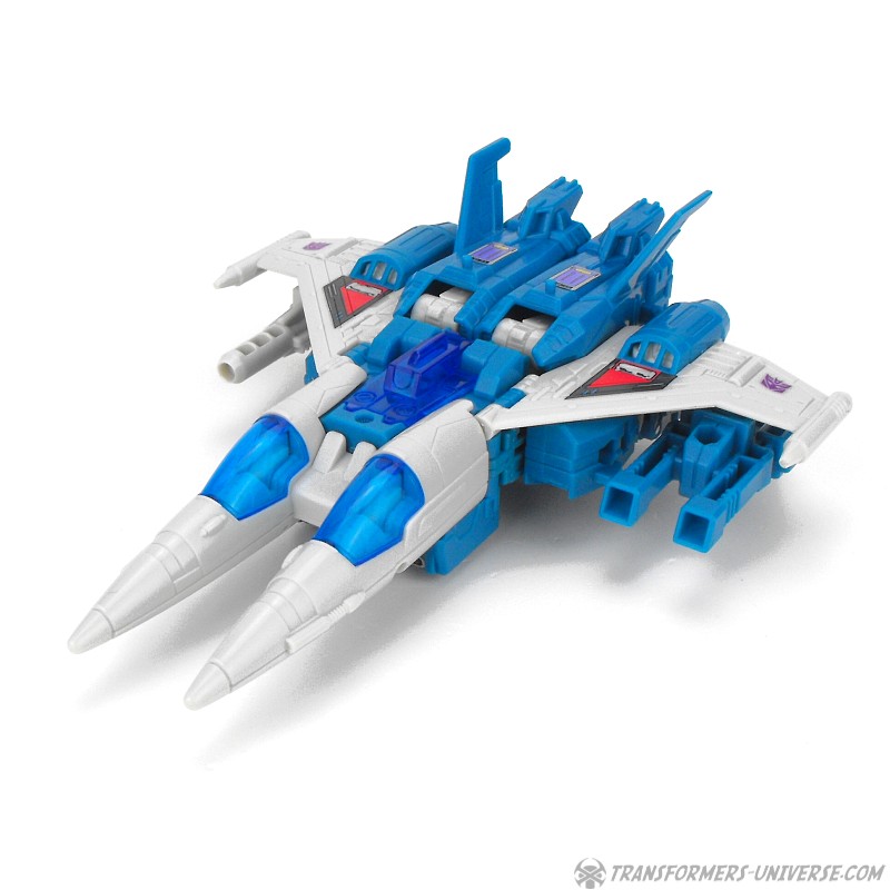 Alternativmodus: Viel hatte G1 Slugslinger ja nicht, was ihn von der Masse abhob, aber sein Jetdesign war recht einzigartig. Das Design mit den zwei Cockpits wurde für die Energon Version wieder aufgegriffen und jetzt auch hier bei Titans Return. Natürlich liegt das eigentliche Cockpit für seinen Titan Master Caliburts weiter hinten, die beiden nur angedeuteten Cockpits weiter vorne wären nicht annähernd groß genug. Trotzdem sehr schön dieses Design wiederzusehen. Ansonsten immer noch ein exzellenter Jetmodus. Keine Beschwerden.