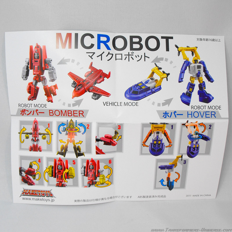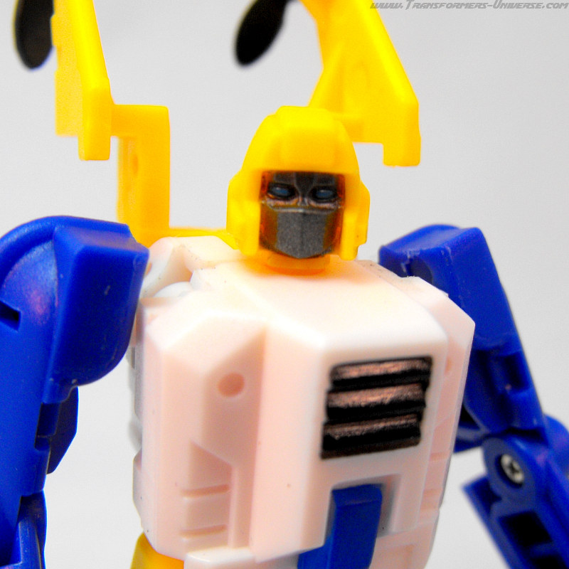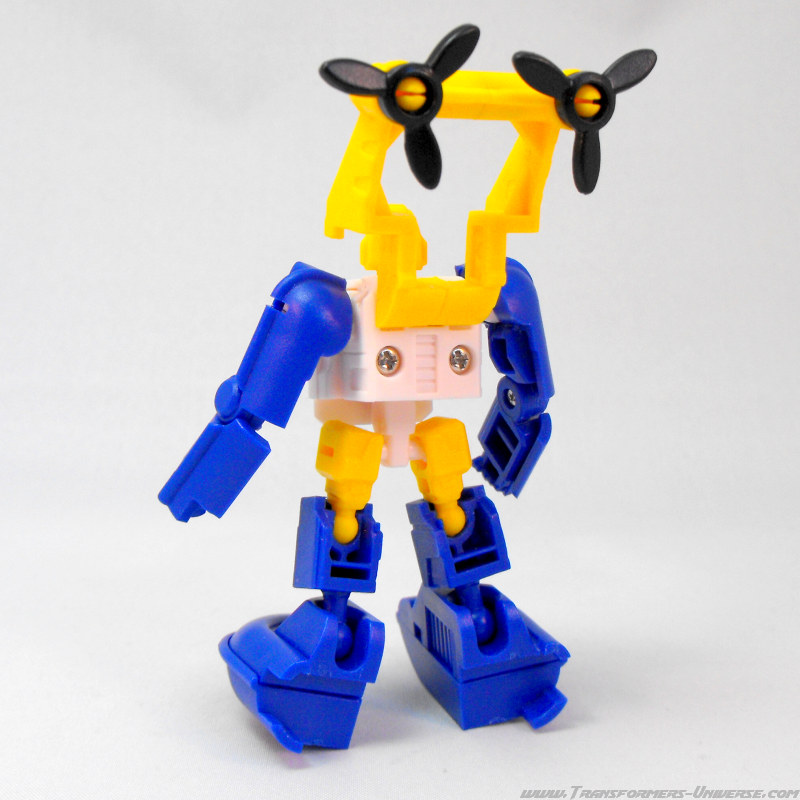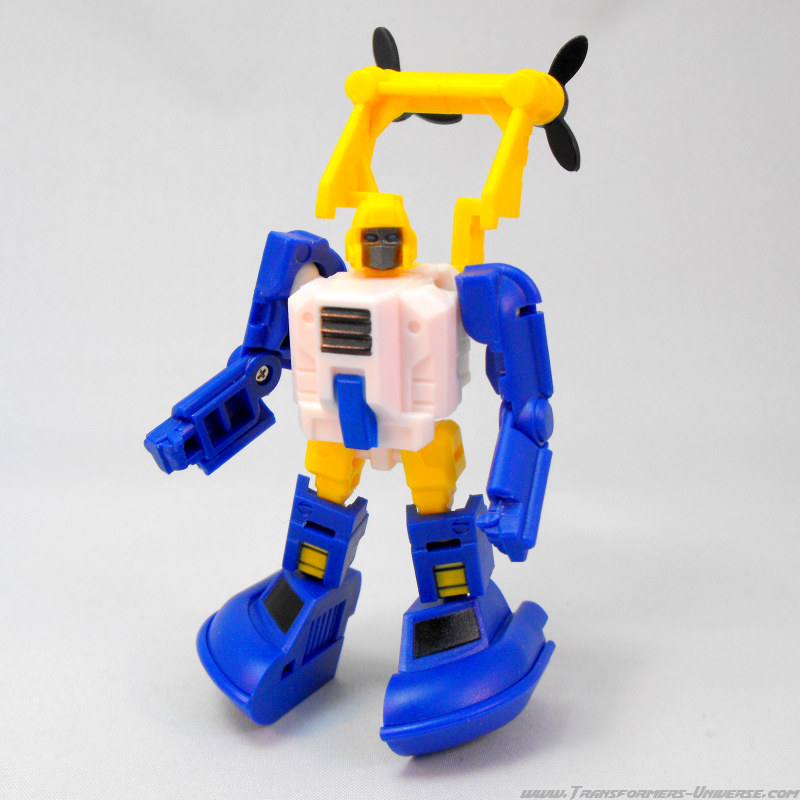 Transformation: Hier nur kurz erwähnt: Hover verwandelt sich analog zu Seaspray, aber ein kleines Problem tritt auf. Klappt man den gelben Aufbau mit den Propellern nach hinten, dann geht in 99% der Fälle mindestens ein Arm dabei ab. Die Arme gehen hier nicht so leicht ab wie bei Hovers Box-Mitbewohner Bomber, aber ich habe es bisher noch nicht einmal geschafft ihn zu verwandeln, ohne danach nicht min. einen Arm wieder anstecken zu müssen.