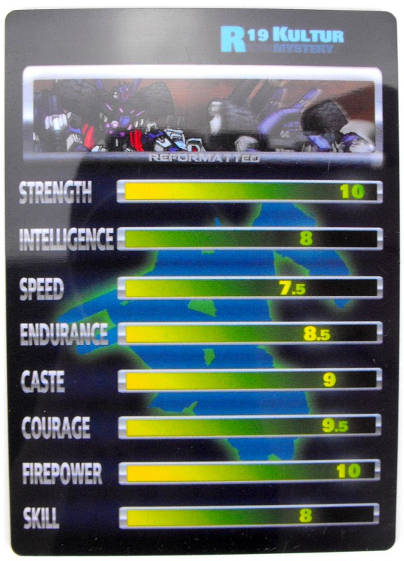 Was die Figur selbst angeht, so hat sie natürlich den Nachteil der meisten Third Party Figuren, nämlich, dass sie deutlich teurer als die meisten offiziellen Tansformers ist. Ansonsten kann ich hier aber wirklich nichts Negatives sagen. Kultur sieht famos aus, hat keine Design-Schwächen und selbst er kein Comic-Leser ist und den Charakter nicht kennt, kann ihn getrost als stolzen Decepticon in seine Sammlung stellen. Eine klare Empfehlung.